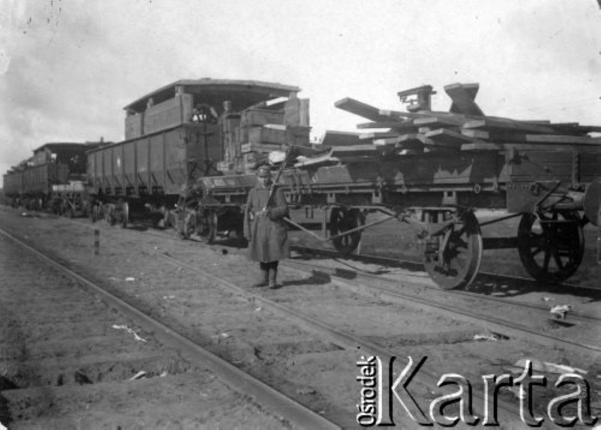 5 pułk piechoty Legionów na Litwie, pancerka zdobyta na bolszewikach przez żołnierzy majora Stefana Dąb-Biernackiego podczas wypadu na Żabki-Turmonty, pociąg przemianowany na "Śmiały-Szeroki".