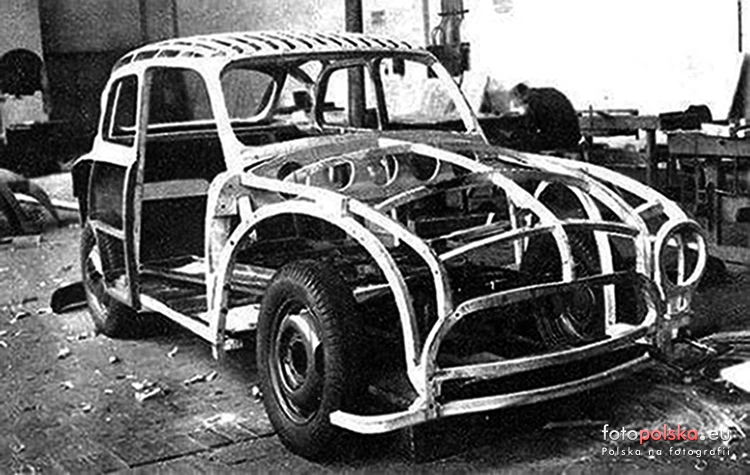1953 , Prawdopodobnie przedprototyp nr 1. Drewniany szkielet nadwozia przyszłej Syreny.Skomentuj zdjęcie