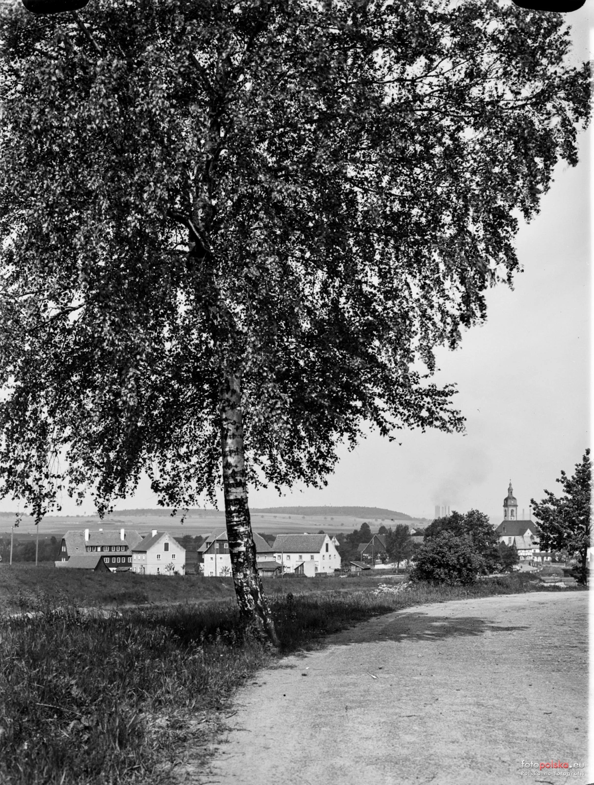 maj 1927 , Widok na Turoszów spod Srebrnej Góry ze starej drogi z Bogatyni. |