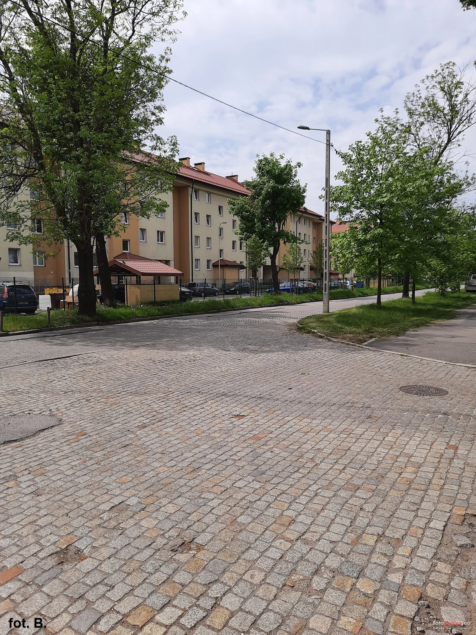 11 maja 2022 , Budynek 6c-n przy ulicy Koszarowej. Oryginalna nawierzchnia ulicy właśnie przechodzi do historii.Skomentuj zdjęcie |