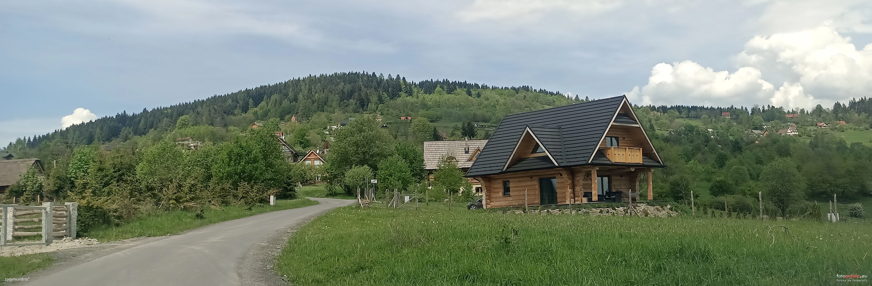 5 maja 2024 , Fragment wsi (w obrębie przysiółka Przysłop), po prawej DW "Asina Chata", z lewej obiekty OW "Osada Beskidzka".Skomentuj zdjęcie |