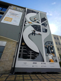 17 września 2025 , Mural "60 lat WEiI". Mural o wymiarach 8m na 20m przedstawia drogę, jaką pokonuje student od chwili przyjęcia na uczelnię aż po zdobycie tytułu. Nawiązuje również do wydziału, posiada logo. Autorem projektu jest Dawid Ryski.Skomentuj zdjęcie |