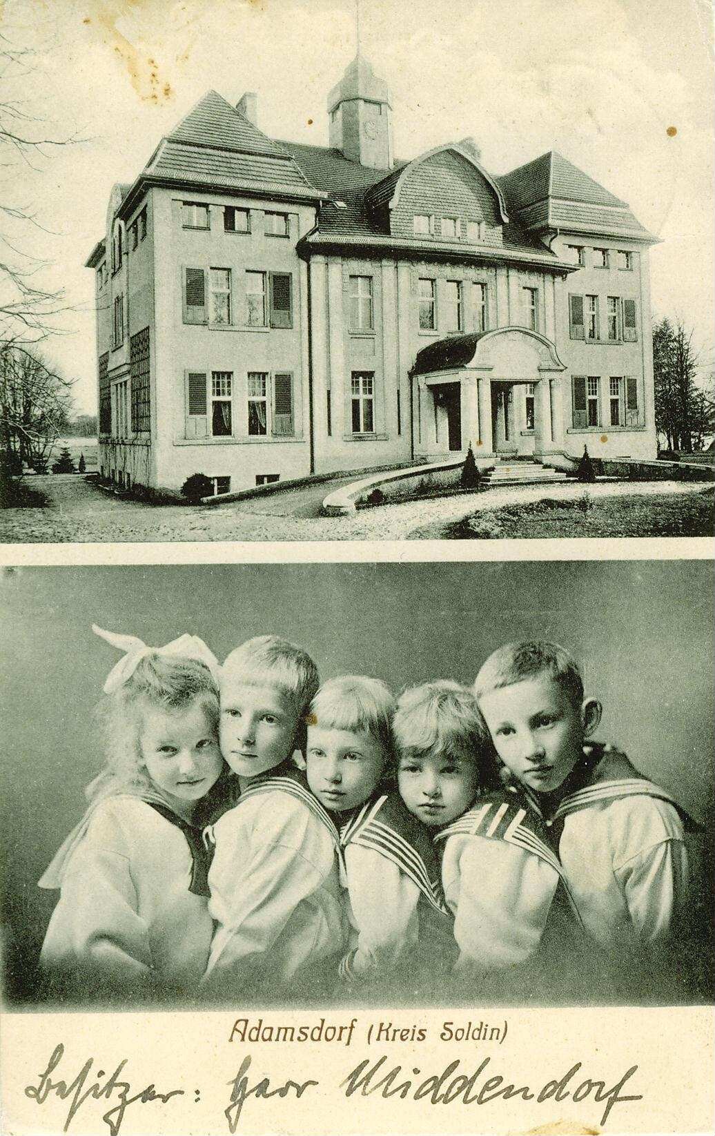 Lata 1905-1915 , "Schloß Adamsdorf, Kinder vom Besitzer Herrn Middendorf".Skomentuj zdjęcie |