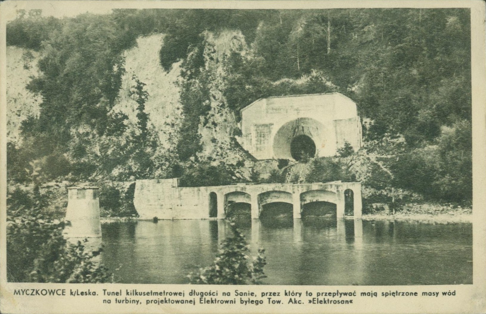 1938 , Myczkowce k/Leska - Tunel kilkusetmetrowej długości na Sanie, przez który to przepływać mają spiętrzone masy wód na turbiny, projektowanej Elektrowni byłego Tow. Akc. >>Elektrosan<<Skomentuj zdjęcie |