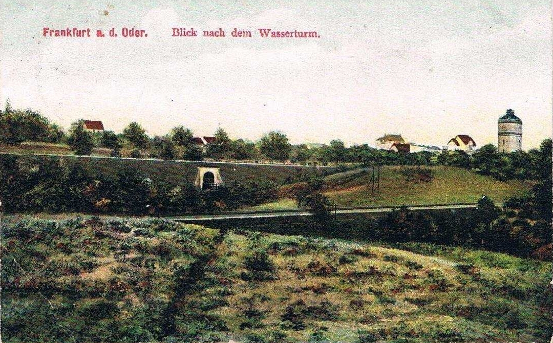 Lata 1905-1910 , Panorama Frankfurtu nad Odrą przy linii kolejowej - widoczna m.in. wieża wodna, obecnie Mühlenweg 48.Skomentuj zdjęcie |
