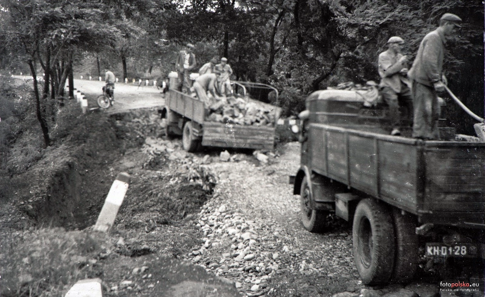sierpień 1960 , Fragment drogi Brzesko - Nowy Sącz, miejscowość Tęgoborze.Skomentuj zdjęcie
