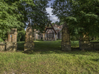 Jednowieżowa świątynia została wzniesiona w stylu neogotyckim. W ruinach zachowały się charakterystyczne dla tego stylu strzeliste okna zakończone ostrym łukiem.