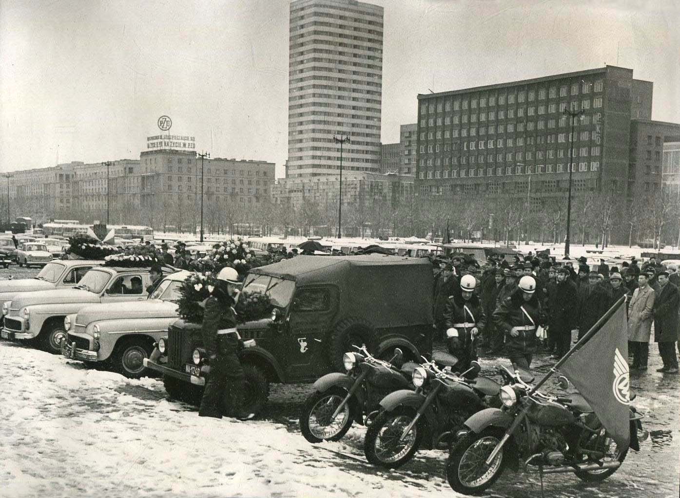 1 pobranie 215 odsłon 0 średnia ocen Poprzednie i następne zdjęcia Dana Obiekty widoczne na zdjęciu Tydzień kultury na jezdni 19. IV - 26.IV 1969 więcej zdjęć (6) Wydarzenia więcej zdjęć (71) pl. Defilad więcej zdjęć (2007) Dawniej: Plac Stalina Plac znajduje się po zachodniej stronie ulicy Marszałkowskiej. Ograniczają go: od północy ulica Świętokrzyska, od południa Aleje Jerozolimskie, natomiast od zachodu - Pałac Kultury i Nauki. Plac Defilad jest jednym z najmłodszych spośród wielkich placów Warszawy. Powstał razem z budową Pałacu Kultury i Nauki w roku 1955 w miejscu zabudowy całości lub fragmentów ulic: Chmielnej, Siennej, Śliskiej, Wielkiej, Zielnej oraz Złotej. Ich przebieg zaznaczony został w powierzchni placu i otaczających go parków. W chwili powstania placu był on największym tego typu założeniem w Europie. W centralnej części placu wybudowano istniejącą do dzisiaj trybunę, ozdobioną sylwetką orła, z której przyjmowano wielkie defilady i marsze w okresie Polski Ludowej. Plac Defilad był kluczowym miejscem wydarzeń 1956 roku. Po przywróceniu do władzy Władysława Gomułki i wybraniu go na stanowisko I sekretarza KC PZPR 24 października 1956 roku na placu Defilad odbył się wiec, w którym uczestniczyło ok. 400 tysięcy osób. Podczas przemówienia na wiecu Gomułka potępił stalinizm i zapowiedział reformy, mające na celu demokratyzację ustroju. Symbolem zmian było m.in. manifestacyjne odmówienie głosu Konstantemu Rokossowskiemu, podczas gdy oddano mikrofon Lechosławowi Goździkowi. Tłum zebrany na placu wyrażał poparcie dla reform polskiego października, ale też domagał się zwolnienia z więzienia kardynała Wyszyńskiego. Legendarne stało się odśpiewanie Gomułce chóralnego "Sto lat". Po przemianach ustrojowych w Polsce plac stracił na znaczeniu. Jego rola została ograniczona do powierzchni, na której wzniesiono kontrowersyjne, szpecące centrum Warszawy hale targowe. Obecnie planowana jest budowa w tym miejscu Muzeum Sztuki Nowoczesnej i innych budowli, mających ukształtować nowe centrum miasta. W niedalekiej przyszłości planowane jest nowe zagospodarowanie przestrzeni placu poprzez budowę tutaj obiektów kulturalnych, przede wszystkim Muzeum Sztuki Nowoczesnej, i przekształcenie samego placu Defilad w miejsce spotkań i agorę. Plac Defilad jest podzielony na kilka działek z których większość stanowi własność miasta stołecznego Warszawy, pozostałe zaś do osób prywatnych. ul. Marszałkowska więcej zdjęć (6869) Nazwa ulicy pochodzi od nazwy urzędu marszałka wielkiego koronnego Franciszka Bielińskiego[1], który bardzo zasłużył się osiemnastowiecznej Warszawie, a którego pałac stał przy historycznym początku ulicy, skrzyżowaniu z ul. Królewską. Fragment przy Ogrodzie Saskim przeprowadzono dopiero w okresie międzywojennym. Towarzyszyły temu duże protesty mieszkańców przeciwnych zmniejszaniu powierzchni parku, m.in. dlatego Marszałkowska w tym miejscu jest wygięta w łuk. Wytyczenie ulicy związane jest z powstaniem w latach 1766–1779 Osi Stanisławowskiej, wielkiego założenia urbanistyczno-ogrodowego Warszawy autorstwa króla Stanisława Augusta Poniatowskiego, Jana Chrystiana Szucha i Fryderyka Augusta Moszyńskiego. Centrum miasta przeniosło się w okolice Marszałkowskiej z dwóch ważnych przyczyn, przede wszystkim z powodu budowy w latach 1844-1845 Dworca Wiedeńskiego przy skrzyżowaniu z Al. Jerozolimskimi. Drugą ważną kwestią była też budowa Cytadeli, po północnej stronie ówczesnego centrum, co wymusiło rozwój miasta w kierunku południowo-zachodnim. W drugiej połowie dziewiętnastego wieku, i początku dwudziestego ulica została prawie w całości zabudowana kilkupiętrowymi kamienicami, często bardzo okazałymi. Mieściło się tu wiele sklepów, restauracji, i innych punktów usługowych (w latach 30. XX wieku kilkanaście kin), ulica była bardzo ruchliwa. W latach 1938-1939 pod numerem 134 przy skrzyżowaniu z ul. Świętokrzyską wybudowano modernistyczny gmach Centrali PKO, zniszczony w 1944 podczas powstania warszawskiego. Straty wojenne W czasie drugiej wojny światowej, zabudowa ta została przez Niemców w dużej mierze zniszczona. Dewastacja rozpoczęła się we wrześniu 1939. Szczególnie ucierpiały w wyniku ostrzału artyleryjskiego i bombardowań lotniczych budynki Dworca Kolei Wiedeńskiej i znajdujące się naprzeciwko niego niewielkie kamieniczki Marszałkowska 104 i 106. Zbombardowana została też północna część ulicy, np. kamienica Marszałkowska 149, znajdująca się na rogu Próżnej, czy 153 – na rogu Królewskiej. Ruiny dworca i kilku zbombardowanych kamienic rozebrano jeszcze w czasie okupacji. Największe zniszczenia przyniosło jednak powstanie warszawskie i zniszczenia, a zwłaszcza podpalenia dokonane po nim. Niektóre kamienice, m.in. Pinkusa Lothego (Marszałkowska 100, na rogu Al. Jerozolimskich) i Marszałkowska 50 uległy zniszczeniu w trakcie walk lub bombardowań. Pozostałe gmachy podpalono w trakcie metodycznej dewastacji miasta. Ponadto wojna uniemożliwiła zabudowę narożnika Marszałkowskiej 135 i Świętokrzyskiej 46. Przed wojną mieścił się tam 1-piętrowy domek, który między 1938 a 1939 rozebrano pod nową – nigdy niezrealizowaną – inwestycję. W 1945 straty ulicy szacowano – być może zawyżając je – na 80% substancji. Według serwisu warszawa1939.pl ocalały przede wszystkim najwytrzymalsze kamienice budowane tuż przed wojną: Marszałkowska 8, 18, 56. Ponadto Niemcy nie zniszczyli budynków na południowym krańcu ulicy: 1, 2, 4, 6. Obronną ręką lub z niewielkimi uszkodzeniami wyszły z wojny kamienice Marszałkowska 17, 28/30, 41, 43, 45, 58, 62, 66 i 101 (tzw. willa Marconiego). Pożar zniszczył fasady kamienic 81 i 81a. Dewastacji i wypaleniu uległy gmachy Marszałkowska 47, 69 i 71 (do drugiego piętra), 81b i 83 (do pierwszego piętra), 85 (do