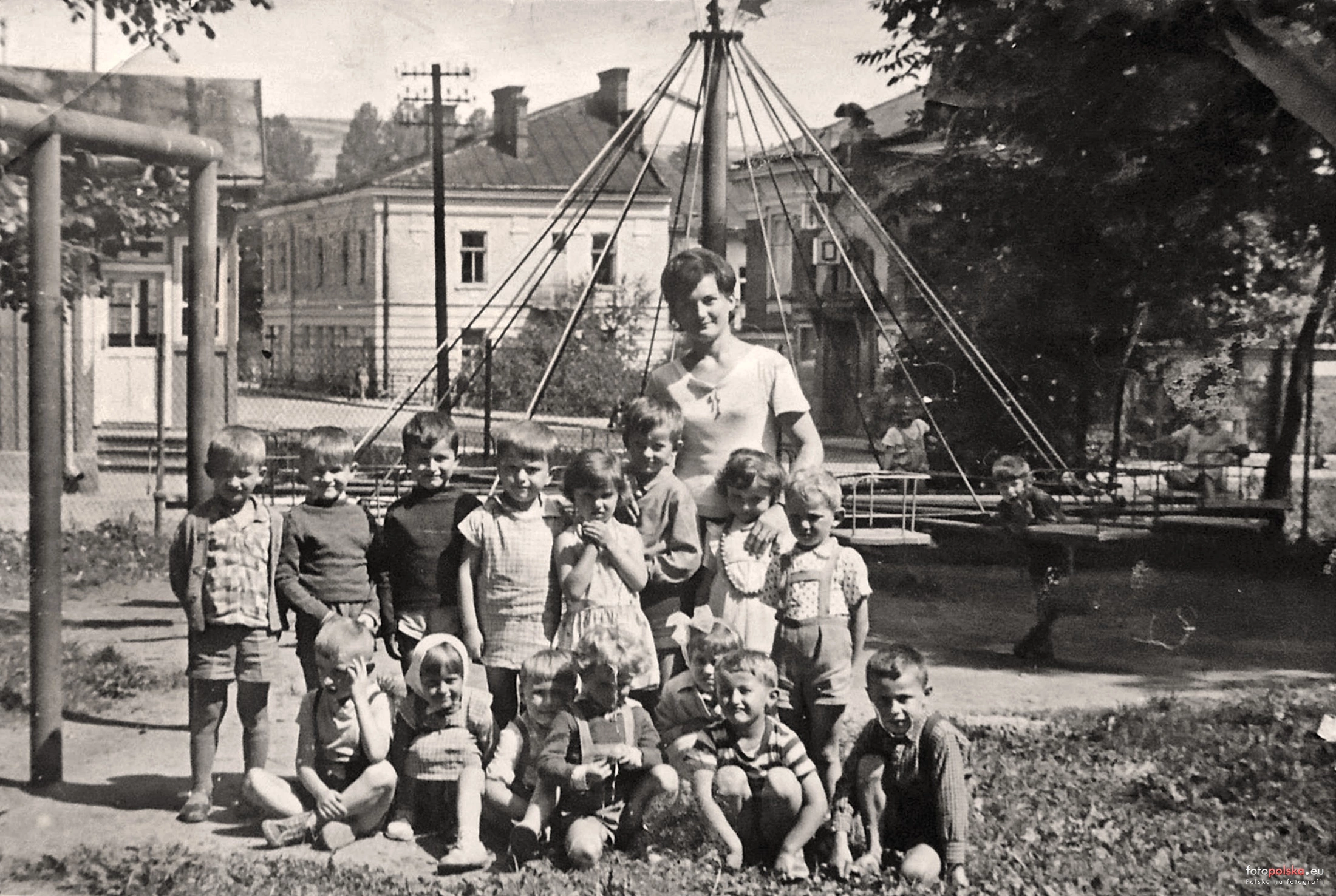 Lata 1960-1965 , Ujęcie z ulicy Kościuszki, sprzed przedszkola, w tle widoczna narożna Kamienica Motykiewiczów, "Sokół" i kino "Biała". |