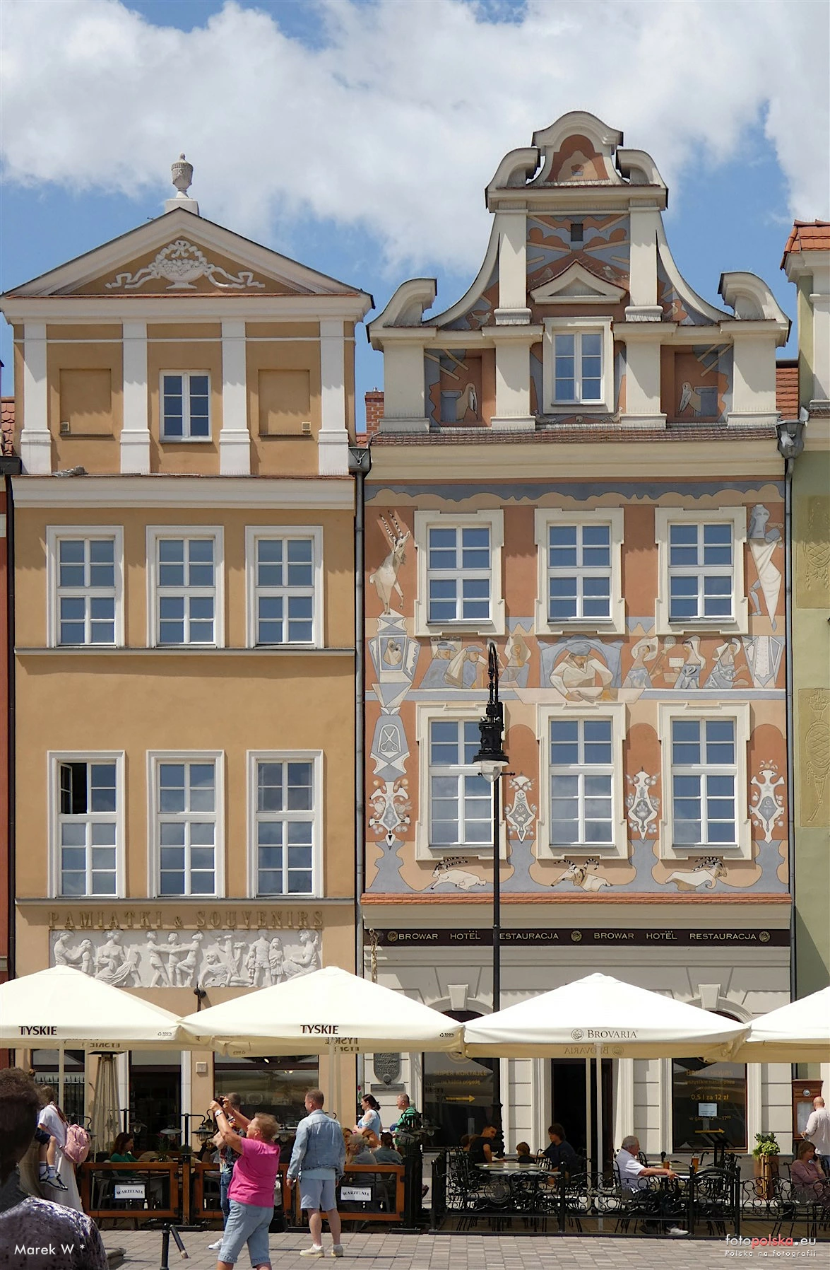 0 pobrań 108 odsłon 6 średnia ocen Poprzednie i następne zdjęcia Marek W Obiekty widoczne na zdjęciu Stary Rynek 73 więcej zdjęć (19) Zbudowano: 1690 Dawniej: Bank Przemysłowców, Komunalna Kasa Oszczędności Stary Rynek 73 – po zniszczeniach wojennych została odbudowana w 1954. Wówczas przywrócono jej formę zbliżoną do tej z przełomu XVII i XVIII wieku. Dekoracja przypomina o tym, że w latach 1690-1752 należała do cechu krawców. Wcześniejszymi właścicielami były między innymi rody Ridtów i Wildów. Od 2004 roku w jej wnętrzach znajduje się hotel i browar restauracyjny Brovaria Stary Rynek 72 więcej zdjęć (10) Stary Rynek 72 – pomiędzy 1603 a 1607 nabył ją autor pierwszej pracy z dziedziny pediatrii De morbis puerorum ..., Jan Hieronim Chrościejewski, kilkukrotny burmistrz Poznania, który wsławił się wydaniem statutu o bezpłatnym leczeniu ubogich. Był on synem innego znanego lekarza – Stanisława, zwanego "Nigrem". Wikipedia Stary Rynek więcej zdjęć (259) Dawniej: Alter Markt Stary Rynek – kwadratowy plac w Poznaniu wytyczony około 1253 roku. Długość boku wynosi około 141 m. Z każdego z boków wychodzą trzy ulice, z czego dwie skrajne z narożników. Każdą z pierzei podzielono pierwotnie na 16 równych działek. W centralnej części rynku umieszczono ratusz, wagę, sukiennice, kramy, ławy chlebowe, jatki a później także arsenał i odwach. Jest trzecim rynkiem co do wielkości w Polsce i jednym z największych w Europie. Uznawany za jeden z najpiękniejszych w kraju. Rynek przez wiele lat stanowił centrum komunikacyjne miasta, a do 1945 tu mieściła się siedziba władz miasta. Funkcję handlową pełni od swego powstania do dziś. |