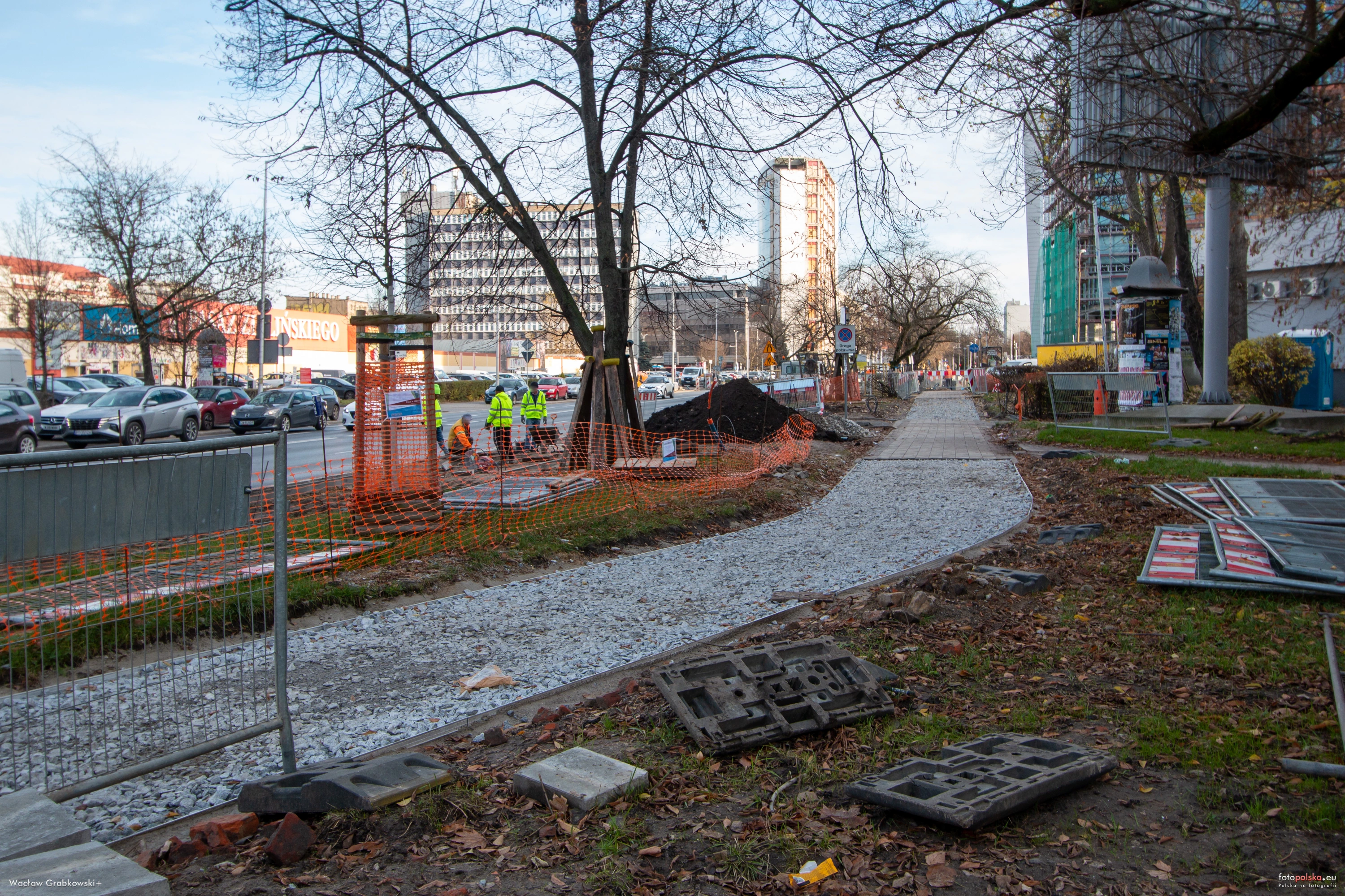 12 listopada 2025 , "Przebudowa ul. Swobodnej w celu wydzielenia dróg rowerowych we Wrocławiu". W głębi u. Powstańców Śląskich.Skomentuj zdjęcie