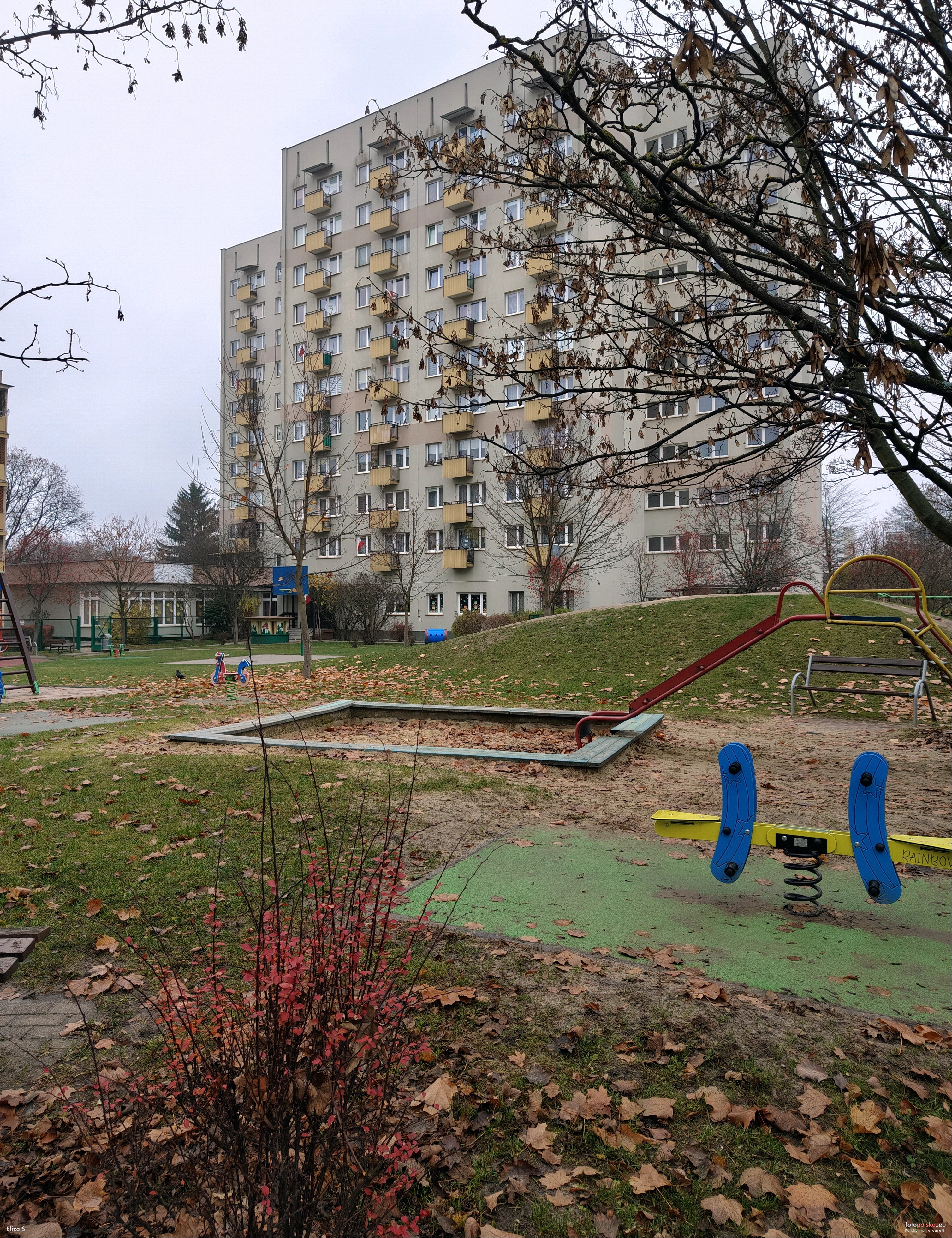 11 listopada 2025 , Plac zabaw dla dzieci przy Przedszkolu nr 32, ul. Wierzbowa 13. W głębi wieżowiec mieszkalny ul. Wierzbowa 13 w Dzielnicy Kośminek.Skomentuj zdjęcie |