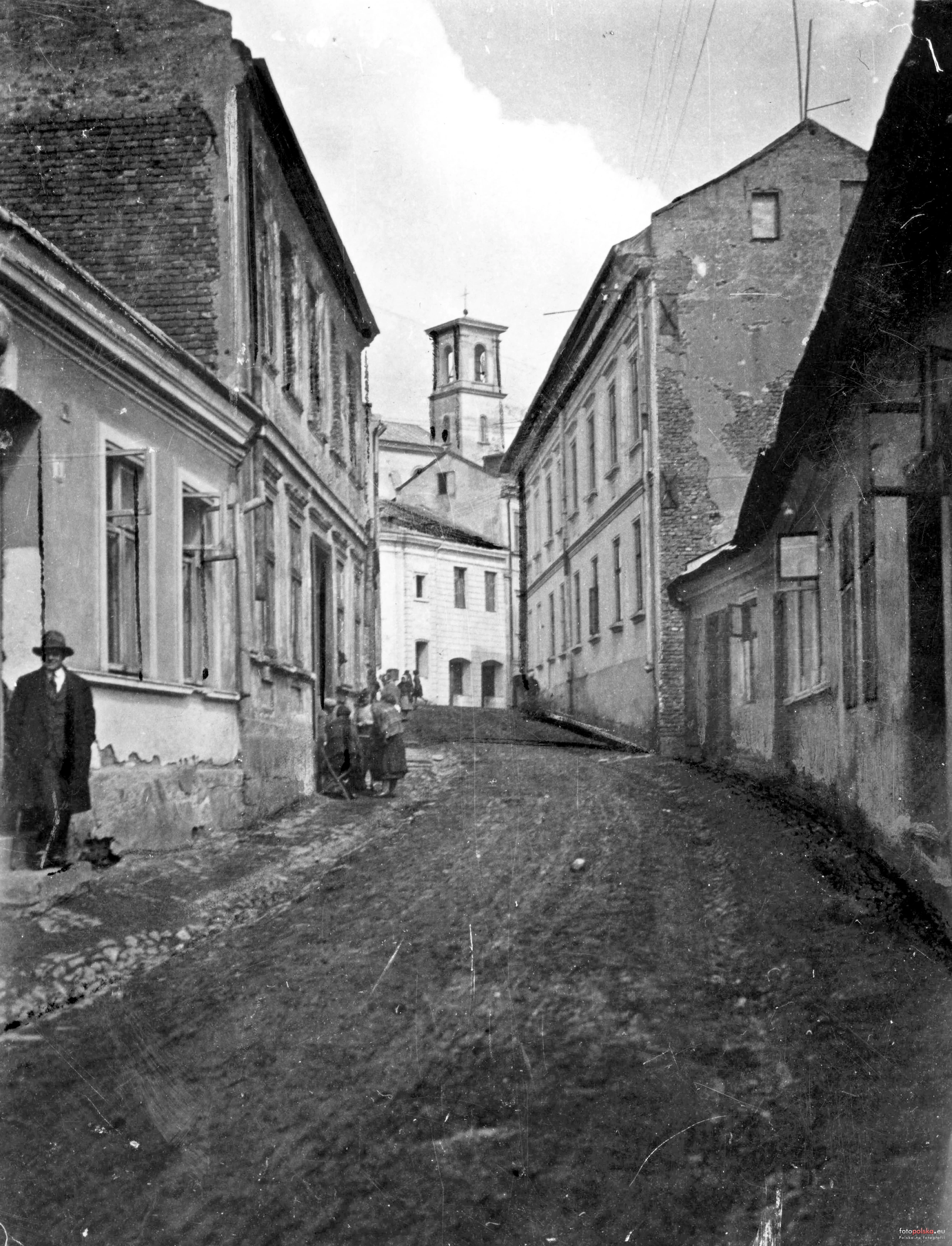 Lata 1932-1939 , Perspektywa ulicy Garbarskiej, w tle widoczny fragment kościoła.Skomentuj zdjęcie