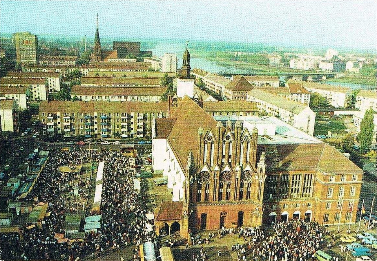 Lata 1970-1985 , "Volksfest auf dem Rathausplatz, im Hintergrund Brücke der Freundschaft zu Polen".Skomentuj zdjęcie |