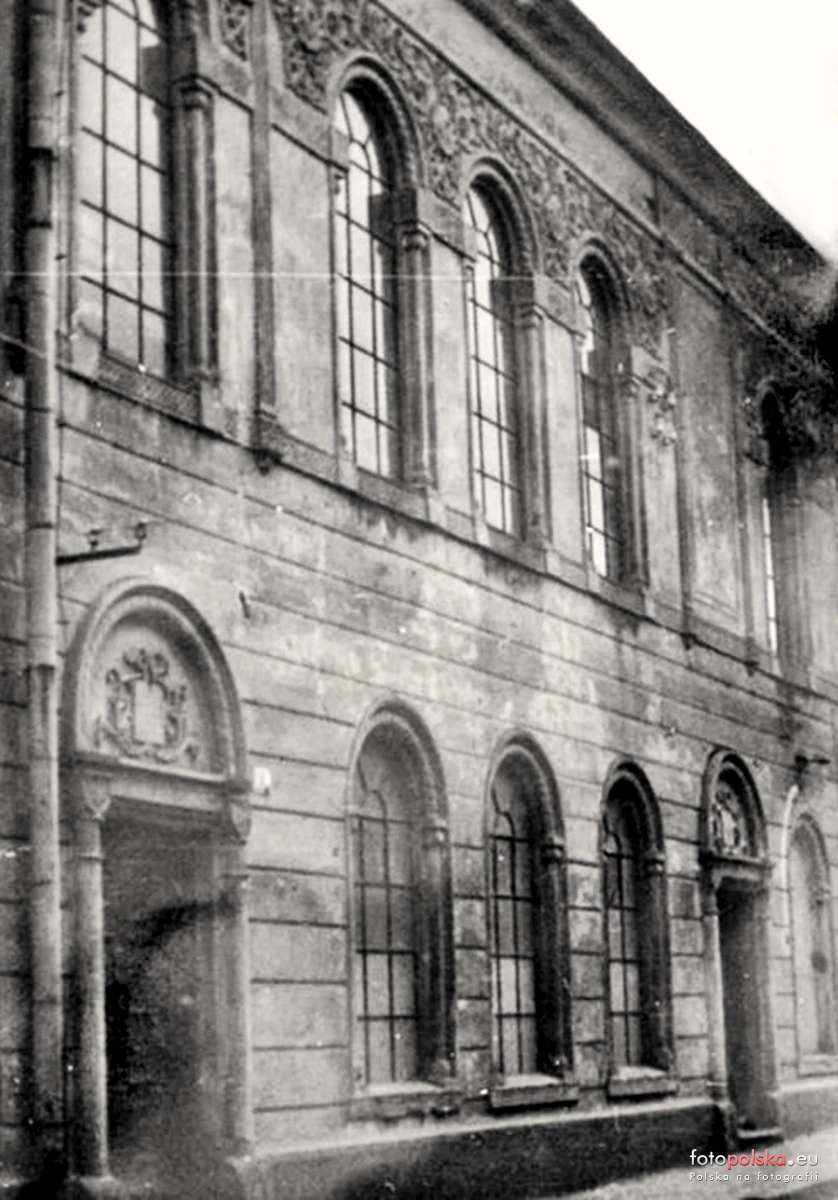 0 pobrań 101 odsłona 0 średnia ocen Poprzednie i następne zdjęcia 4elza Obiekty widoczne na zdjęciu Piekarska 3 więcej zdjęć (9) Zbudowano: XVIII w. Dawniej: Synagoga Duża Zabytek: Ks.A.781 z 07.08.1995 Synagoga Duża - usytuowana przy ulicy Piekarskiej 3 (dawniej: Bożnicza) u zbiegu z Cichą. Synagoga została zbudowana dla potrzeb miejścowej ludności żydowskiej, ze względu na gwałtowny wzrost liczby członków lokalnej https://pl.wiki...iki/Kaha%C5%82" Do synagogi dostawiono płytką przybudówkę, mieszczącą na parterze https://pl.wiki.../wiki/Babiniec" Podczas https://pl.wiki..._%C5%9Bwiatowa">II wojny światowej wnętrze synagogi zostało zdewastowane przez https://pl.wiki...rg/wiki/Nazizm">hitlerowców i pod koniec https://pl.wiki.../Wrzesie%C5%84">września https://pl.wikipedia.org/wiki/1939">1939 zamienione na https://pl.wiki...g/wiki/Stajnia">stajnię. Po zakończeniu wojny budynek był użytkowany jako https://pl.wiki...azyn_(budowla)">magazyn, natomiast w https://pl.wikipedia.org/wiki/1967">1967 został adaptowany na piekarnię mechaniczną, która mieści się w nim nadal. Wówczas sala główna została wtórnie podzielona stropem oraz zniszczono całkowicie bardzo dobrze zachowaną dekorację zewnętrzną i cenne polichromie wewnątrz synagogi. Ocalało jedynie sklepienie kolebkowe na gurtach. Na ścianie synagogi znajduje się tablica pamiątkowa upamiętniająca około 2500 https://pl.wiki...iki/%C5%BBydzi">Żydów zamordowanych podczas okupacji przez Niemców. Jej treść brzmi: „Dla upamiętnienia masowych egzekucji i eksterminacji Żydów w naszym powiecie w latach 1939-1945. Fundator PSS w Gorlicach”. ul. Piekarska więcej zdjęć (16) |
