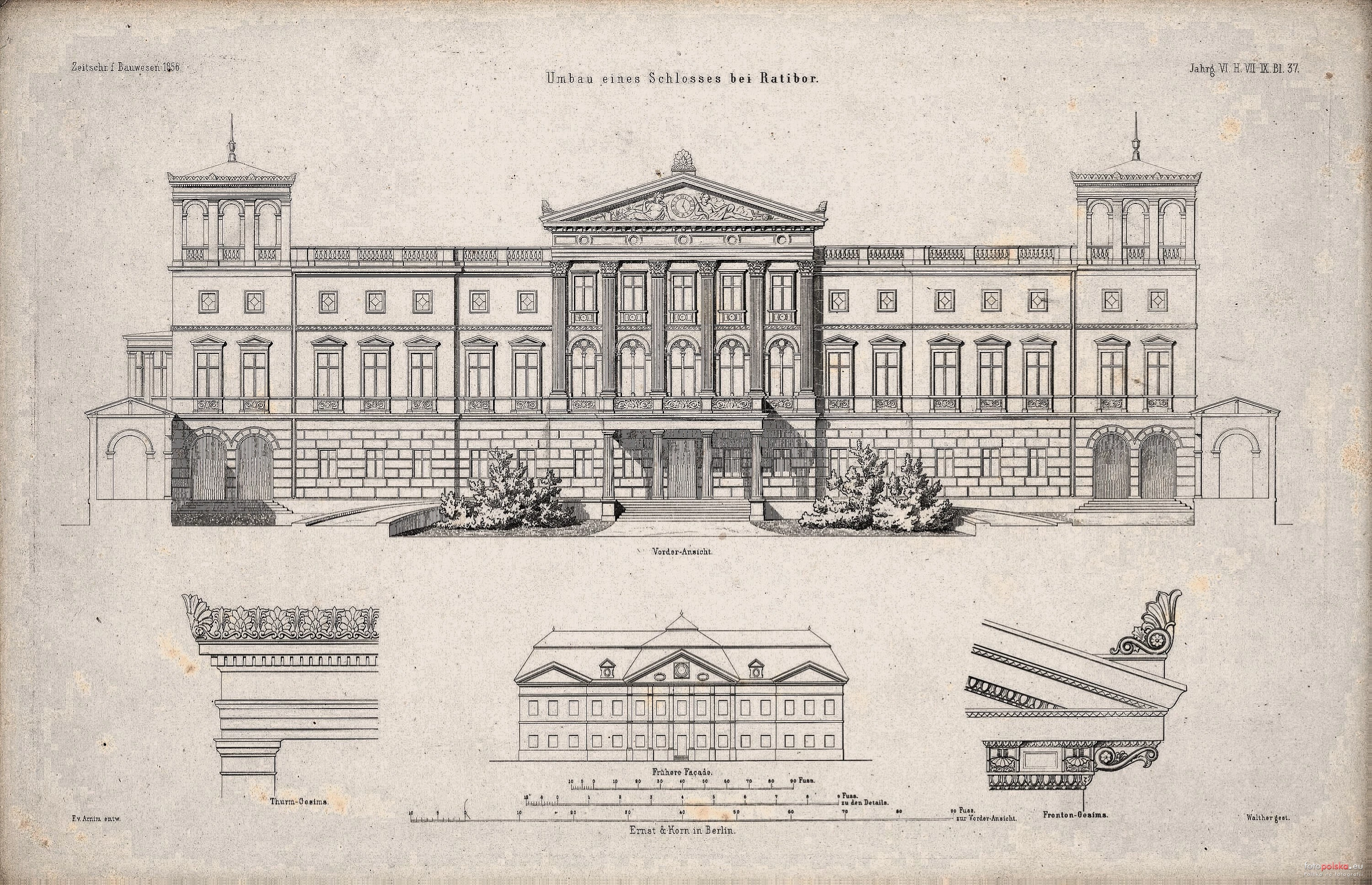1856 , Projekt fasady oraz kilku detali Pałacu autorstwa Ferdinanda von ArnimaSkomentuj zdjęcie