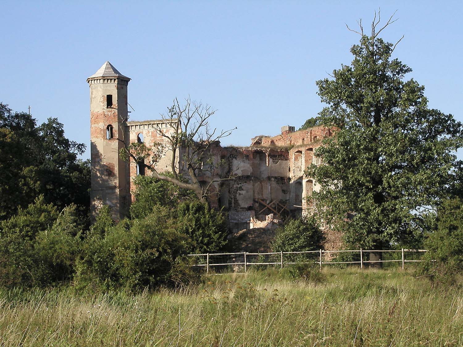 1 pobranie 1435 odsłon 5.22 średnia ocen Poprzednie i następne zdjęcia pawulon Obiekty widoczne na zdjęciu Zamek więcej zdjęć (51) Atrakcja turystyczna Zbudowano: 1319 Dawniej: Schloss Auras Zabytek: A/3913/400 z 24.11.1956 Historia Pierwsze wzmianki o należącej do książąt wrocławskich miejscowości Uraz pochodzą z początku XIII wieku, wzmianki o grodzie kasztelańskim strzegącym przeprawy na Odrze - sprzed połowy tego stulecia. W roku 1291 na mocy testamentu Henryka Probusa gród ten przeszedł wraz z ziemiami na prawym brzegu Odry na własność księcia Henryka głogowskiego, by w 1312 trafić w ręce synów głogowczyka: Konrada i Bolesława. Przy sporządzaniu aktów dziedzicznych potwierdzono wówczas miasto i zamek, określając je w dokumentach jako civitatem et castrum. Jednak już kilka lat później Uraz ponownie stał się własnością książąt wrocławskich i około 1319 przekazany został w lenno trzem braciom Radakom. Jeden z owych braci, Andreas Radak, rozbudował dotychczasowe założenie, którego pierwszego fundatora ani czasu powstania nie można dzisiaj jednoznacznie określić - wśród historyków występują na ten temat poważne rozbieżności i skrajne opinie, łącznie z tezą, iż zamek wybudował Zakon Templariuszy jeszcze przed rokiem 1250. W 1336 miasto Uraz nabył Konrad von Borschnitz, starosta Wrocławia, posiadacz wielu dóbr ziemskich. W roku 1344 wzmiankowany jest burgrabia Hancho von Auras, zaś w 1363 - Herman von Borschnitz, przyszły asesor sądu starościańskiego i wierzyciel książąt brzeskich. W latach 1428-43 w Urazie wzmiankowani są przedstawiciele rodu von Tschirna. W 1466 czeski król Jan z Podiebradu nadał lokalne dobra rycerzowi Christophowi von Skopp, któremu przypisuje się rozbudowę średniowiecznej warowni o kolejne piętra i nowe umocnienia. Po nim w źródłach pojawia się książę oleśnicki Konrad Biały, a od 1492 Christoph von Joerger, rozpoczynając tym samym blisko 150-letni okres panowania tej rodziny w Urazie. W międzyczasie, tj. w połowie XVI stulecia i około 1630r. nastąpiły dalsze przekształcenia zameczku - dobudowano wówczas trakt w jego północnej części z narożnymi wieżyczkami, wprowadzono murowane podziały wnętrz, a całości nadano formy barokowe. W 1640r. od von Joergerów budowlę odkupiła rodzina von Saurma-Jeltsch, następnie w latach 1690-95 posiadłość ta należała do barona Balthazara von Logau i odtąd już często wędrowała z rąk do rąk. Około 1810, gdy Uraz stanowił własność barona von Koschuzky, rozebrano przylegające do zamku południowo-wschodnie mury obronne i most zwodzony, a fosy częściowo zasypano. Samą rezydencję przebudowano w stylu neogotyckim w drugiej połowie XIX wieku, niemal zupełnie likwidując elementy starszego wystroju. Z początkiem XX stulecia zaniedbywany gmach podupadł i ostatecznie uległ zniszczeniu w roku 1945, gdy podpalili go żołnierze radzieccy. Po wojnie rozszabrowany, pozbawiony niezbędnej opieki szybko przemienił się w ruinę - w 1952 zawaliły się sklepienia i strop parteru, a rok później runął narożnik południowy. Resztki murów zabezpieczono w 1956. Architektura Zamek usytuowano w zakolu Odry i otoczono wałem ziemnym oraz fosą. Składał się on z poligonalnego narysu murów obronnych, z budynkiem mieszkalnym w formie wieży wpisanej w zachodni narożnik obwodu, i baszty bramnej po stronie północnej. Wieża mieszkalna, początkowo trzykondygnacyjna, zbudowana została z rudy bagiennej i cegły na planie trójkąta równobocznego, o ostrych narożach wymierzonych w stronę miasta i Odry, powodujących "ślizganie" się pocisków po murze, a tym samym łagodzących przykre skutki ewentualnego ostrzału nieprzyjaciela - przy czym długość jednego boku wynosiła około 23 metry, a grubość ścian w dolnych partiach - około 2,5 metra. Była to konstrukcja niezwykle rzadka - prawdopodobnie na świecie istnieją tylko trzy zamki oparte na podobnym planie. Przyziemie i dwa piętra wieży przykryte były sklepieniami krzyżowo-żebrowymi, wspartymi na centralnie umieszczonych słupach, i przedzielone ściankami działowymi na trzy zbliżone kształtem i wielkością pomieszczenia na każdej z tych kondygnacji. W okresie późniejszych przekształceń budynek podwyższono o dwa kolejne piętra, wprowadzono nową kamieniarkę okien, a całość nakryto stromym trójpołaciowym dachem. Od północy przy dobudowanym trakcie umieszczono dwie wysmukłe, wieloboczne wieże, zwieńczone barokowymi hełmami. Wygląd rezydencji zmieniła całkowicie przebudowa neogotycka z XIX wieku. Stan obecny Do czasów współczesnych zachowała się malownicza skorupa murów zewnętrznych wieży mieszkalnej do wysokości trzech kondygnacji od strony północnej i zaledwie do parteru od południa; przetrwały też sklepione piwnice, resztki kolistego filaru, fragmenty ścianek działowych, a także fundamenty murów obwodowych oraz średniowiecznej baszty. Od niedawna ruina ma nowego właściciela, który z godną podziwu konsekwencją stara się ją wskrzesić i częściowo odbudować, o czym traktuje dramatyczny tekst w ramce poniżej. Dla osób postronnych zamek jest niestety niedostępny - ogrodzony szczelnie wysokim płotem z drutu skutecznie zniechęca do odwiedzin na własną rękę. Można go jednak obejrzeć z drogi gruntowej, otaczającej posiadłość, skąd jest bardzo dobry widok - szczególnie w miesiącach bezlistnych. Jeśli komuś bardzo zależy na dokładniejszych oględzinach, powinien wcześniej zapytać gospodarza, p. Andrzeja Lipińskiego, który zamieszkuje tutaj na stałe. tekst za |