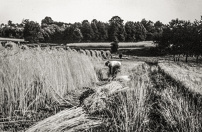 1985 , Jedne z ostatnich takich żniw... Stogi już postawione (po części). Dalej, struga (rzeka Mękwa) i stawiki. Za nią i górką - wieś Łazy.Skomentuj zdjęcie |