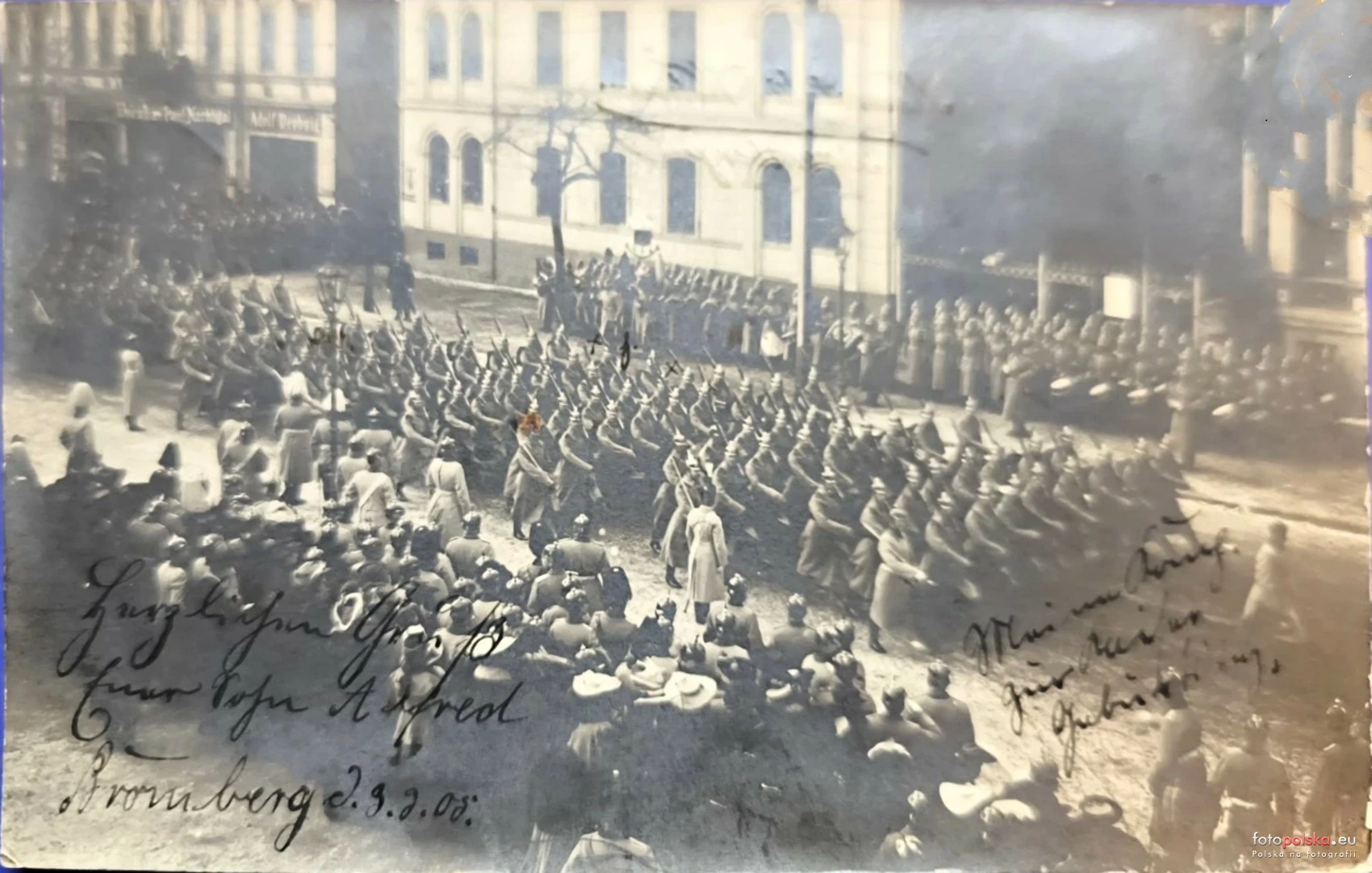 9 września 1905 , Pochód wojska na ulicy Gdańskiej.Skomentuj zdjęcie