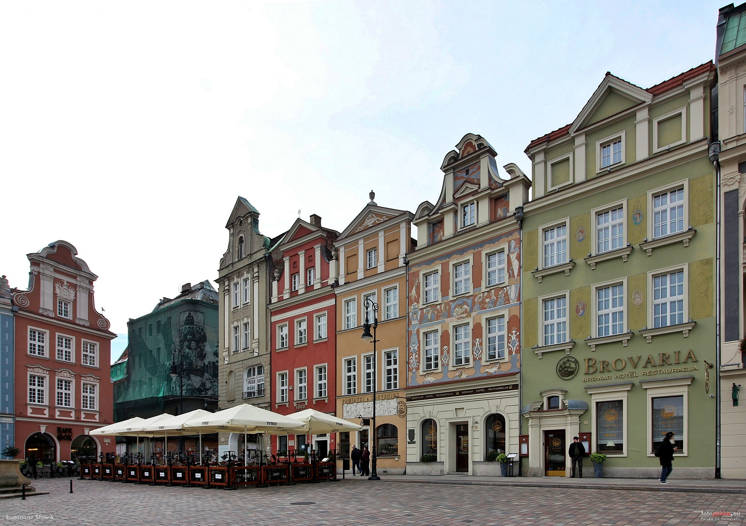 0 pobrań 121 odsłon 6 średnia ocen Poprzednie i następne zdjęcia Eugeniusz S. Obiekty widoczne na zdjęciu Stary Rynek więcej zdjęć (1737) Dawniej: Alter Markt Stary Rynek – kwadratowy plac w Poznaniu wytyczony około 1253 roku. Długość boku wynosi około 141 m. Z każdego z boków wychodzą trzy ulice, z czego dwie skrajne z narożników. Każdą z pierzei podzielono pierwotnie na 16 równych działek. W centralnej części rynku umieszczono ratusz, wagę, sukiennice, kramy, ławy chlebowe, jatki a później także arsenał i odwach. Jest trzecim rynkiem co do wielkości w Polsce i jednym z największych w Europie. Uznawany za jeden z najpiękniejszych w kraju. Rynek przez wiele lat stanowił centrum komunikacyjne miasta, a do 1945 tu mieściła się siedziba władz miasta. Funkcję handlową pełni od swego powstania do dziś. |