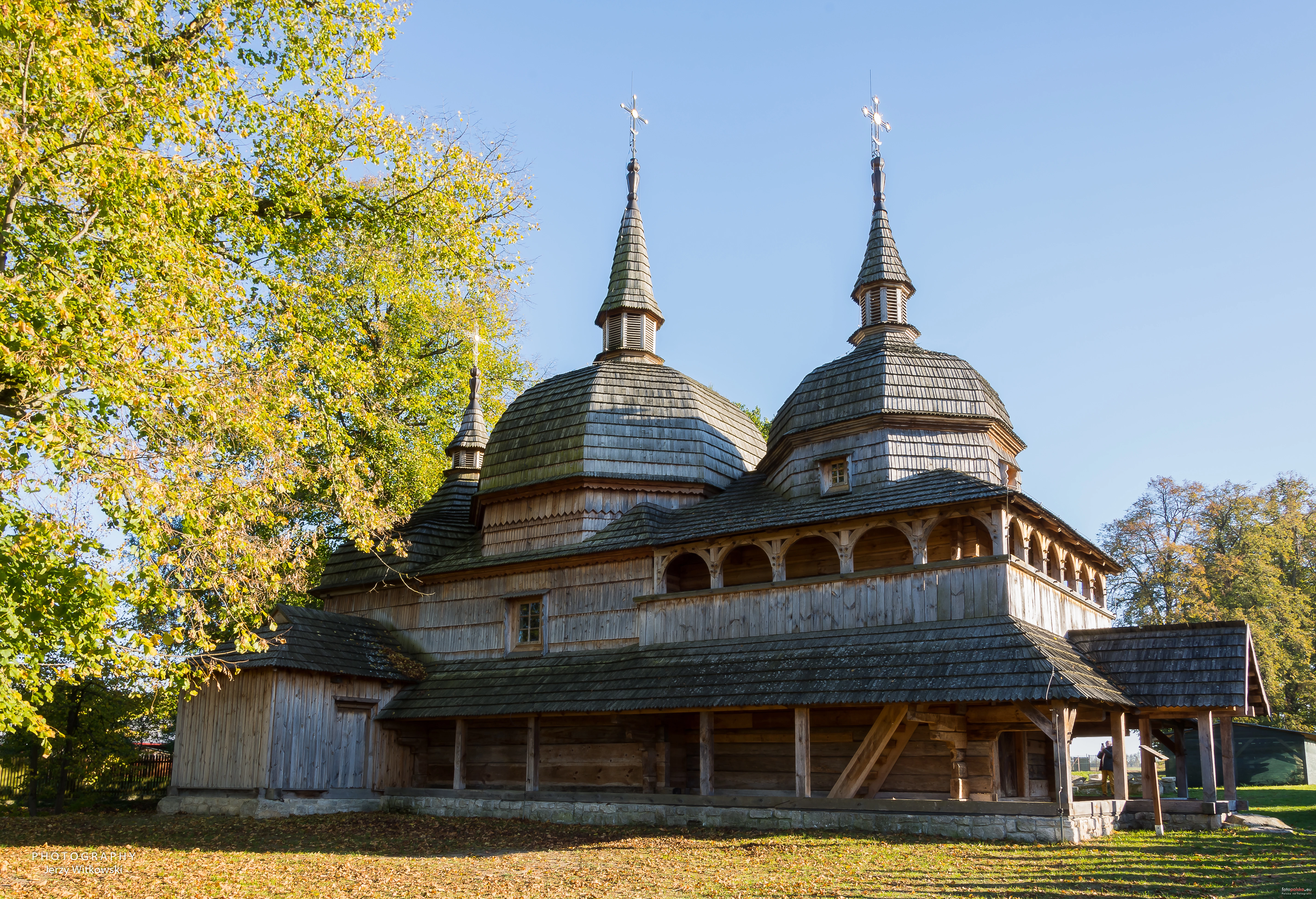 1 pobranie 104 odsłony 0 średnia ocen Poprzednie i następne zdjęcia Jerzy WITKOWSKI Obiekty widoczne na zdjęciu Cerkiew św. Paraskewy więcej zdjęć (42) Zbudowano: 17.-18. w. Cerkiew powstała najwcześniej w 1676 a najpóźniej w 1790 r. Udokumentowana jest tylko data przebudowy w latach 1903-1906 r. Jest to budowla trójdzielna, konstrukcji zrębowej, oszalowana deskami. Każda z części nakryta jest dużą kopułą z latarnią. Ośmioboczne kopuły i bębny pokryte są blachą. Pierwotnie nad babińcem znajdowała się kaplica z galerią arkadową od zewnątrz. Budowla otoczona była wokół zadaszeniami i sobotami. W 1873 r. do sanktuarium dostawiono zakrystię, a w 1903 r. przekształcono bryłę budowli (wzniesiono nowy babiniec, zmieniono profile kopuł i zlikwidowano zadaszenie). Była to filialna cerkiew greckokatolickiej parafii w Bruśnie Starym, po wojnie nieużytkowana i zdewastowana, w latach 90. XX w. rozpoczęto prace konserwatorskie. W pobliżu cerkwi znajduje się stary cmentarz z licznymi nagrobkami, pochodzącymi z miejscowych warsztatów kamieniarskich, w tym także powojenne prace ostatnich kamieniarzy z Polanki. Na cmentarzu zachowały się także nagrobki ewangelickich osadników niemieckich z DeutschBach, zwieńczone trójkątem zamiast krzyża. Źródło: Autorzy: Licencja: [ CC-BY-SA 3.0] |