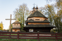 0 pobrań 109 odsłon 0 średnia ocen Poprzednie i następne zdjęcia Jerzy WITKOWSKI Obiekty widoczne na zdjęciu Cerkiew Narodzenia Najświętszej Marii Panny więcej zdjęć (25) Zbudowano: 1764 Zabytek: A-157 z 29.09.1986 Cerkiew pod wezwaniem Narodzenia Najświętszej Maryi Panny w Gorajcu z XVI w. należy do najstarszych obiektów drewnianego budownictwa cerkiewnego w Polsce. Oprócz niej z tego okresu i na tym terenie zachowała się w Polsce cerkiew w Radrużu a na ukraińskim Roztoczu cerkwie w Potyliczu i Woli Wysockiej. Do początku lat 90. XX w. cerkiew datowana była na połowę XVIII w., w związku z czym nie wzbudzała większego zainteresowania i rzadko pojawiała się w publikacjach. Badania przeprowadzone przy okazji remontu w 1995 r., w szczególności odkrycie pierwotnych polichromii, wykazały, że cerkiew jest o 200 lat starsza. Cerkiew została zbudowana w 1586 r. mogła być pierwotnie cerkwią filialną parafii w Żukowie; pierwsza potwierdzona informacja o niezależnej parochii w Gorajcu pochodzi z przywileju króla Zygmunta III z 18 listopada 1618 r. Była to budowla trójdzielna, na planie prostokątnym, z jedną kopułą nad nawą. Babiniec zwieńczony był niższą od kopuły wieżą dzwonniczą, sanktuarium przekryte sklepieniem kolebkowym. Obok sanktuarium istniało pastoforium. Charakterystycznym elementem wnętrza była – zachowana do dzisiaj – stała przegroda ikonostasowa, w 2 ćwierci XVII w. pokryta polichromią. W końcu XVII w. w świątyni stanął nowy ikonostas architektoniczny, zasłaniając na przeszło 200 lat pierwotne malowidła na ścianie ikonostasowej. Liczne remonty i przebudowy cerkwi znacznie zmieniały jej wygląd i wystrój. Pierwszy odbył się już w XVII w., być może zbiegł się w czasie z budową nowego ikonostasu. Przebudowane zostało sanktuarium, ściana ikonostasowa oraz zlikwidowane pastoforium. Największe zmiany w układzie przestrzennym miały miejsce w 1. poł. XIX w. W 1816 r. wzniesiono nowe sanktuarium, przekryte ośmioboczną kopułą. W 1835 r. zbudowano od nowa babiniec, zwieńczony pozornym sklepieniem kopułowym (w miejsce dotychczasowej wieżyczki dzwonniczej). W latach 1867-1868 ściany oraz kopuły nawy i prezbiterium pokryto nową polichromią figuralno-ornamentalną, która zasłoniła częściowo stare malowidła.Duże zmiany przyniosła przebudowa na pocz. XX w., gdy niewielka świątynia nie mogła pomieścić licznych parafian. Pomiędzy rokiem 1900 a 1911 poszerzono cerkiew, dodając po północnej i południowej stronie boczne skrzydła przy nawie, wskutek czego plan świątyni zmienił się na krzyżowy. Zostały przy tym wycięte boczne ściany nawy, w związku z czym nie wiadomo, czy występowała na nich polichromia i z jakich okresów.Od 1947 r. cerkiew wykorzystywana jest jako kaplica filialna parafii w Cieszanowie. Podczas remontu i konserwacji w latach 1991-2001 usunięto boczne nawy a odbudowano ściany nawy głównej, przywracając cerkwi pierwotny plan. Zachowano natomiast trójkopułową sylwetkę, którą cerkiew uzyskała podczas remontów w 1. poł. XIX w. W roku 2006 wykonywane były kolejne prace konserwatorskie, obejmujące m.in. uzupełnienie zniszczonych fragmentów belek i konserwację drewna. Cerkiew ma konstrukcję zrębową i posadowiona jest na kamiennej podmurówce. Wykonana została przez profesjonalny warsztat ciesielski, podobnie, jak cerkwie w Radrużu i Potyliczu. Charakteryzuje się połączeniem zachodnich, późnogotyckich elementów konstrukcyjnych z bryłą ukształtowaną według tradycji wschodniej. Jest budowlą trójdzielną, w jej skład wchodzą: * Centralna, kwadratowa nawa główna, nad nią zrębowa, kwadratowa kopuła z jednym załamaniem. Nad kopułą pseudolatarnia, zwieńczona cebulastym hełmem i kutym, ozdobnym, żelaznym krzyżem z 1 poł. XIX w.; * Od wschodu węższe, kwadratowe prezbiterium, nad nim niższa od centralnej, ośmioboczna kopuła na tamburze; * Od zachodu węższy od nawy, prostokątny babiniec z pozorną, ośmioboczną kopułą, przekryty wewnątrz stropem belkowym. Nad kopułami prezbiterium i babińca pseudolatarnie z cebulastymi hełmami i żelaznymi krzyżami. Dolną część zrębu chroni szeroki okap, wsparty na wystających belkach zrębu – rysiach. Okap, ściany ponad nim, dachy, kopuły i latarnie pobite są gontem. Do wnętrza prowadzą trzy otwory drzwiowe; główny w babińcu z datą 1835 na nadprożu, drugi w południowej ścianie nawy i trzeci północnej ścianie sanktuarium. Najstarsze zachowane elementy cerkwi, to: * Górna część konstrukcji ścian nawy (belki powyżej 9 wieńca) * Kopuła zrębowa, czworoboczna nad nawą, z jednym załomem, z dwupoziomowym systemem ściągów wewnątrz. * Przegroda ikonostasowa z profilowanym, romboidalnym otworem pośrodku górnej części i pozostałościami po dwóch otworach liturgicznych i fragmentami XVII-wiecznej polichromii. Przez kilka wieków zespół cerkiewny otoczony był drewnianym parkanem, wspartym w XIX w. na murowanych słupach. W roku 2006 zbudowany został nowy, w całości drewniany parkan. Stojąca przy północno-wschodnim boku cerkwi drewniana dzwonnica z 1860 została tu przeniesiona w 1994 z Majdanu Sieniawskiego. Pierwotna drewniana dzwonnica z przełomu XVIII i XIX w. usytuowana w północno-zachodnim narożu terenu rozebrana została w połowie lat 70. XX w. podczas poszerzania drogi. Elementy wyposażenia cerkwi, m.in ikony i przybory liturgiczne znajdują się w składnicy ikon w Muzeum-Zamku w Łańcucie. |
