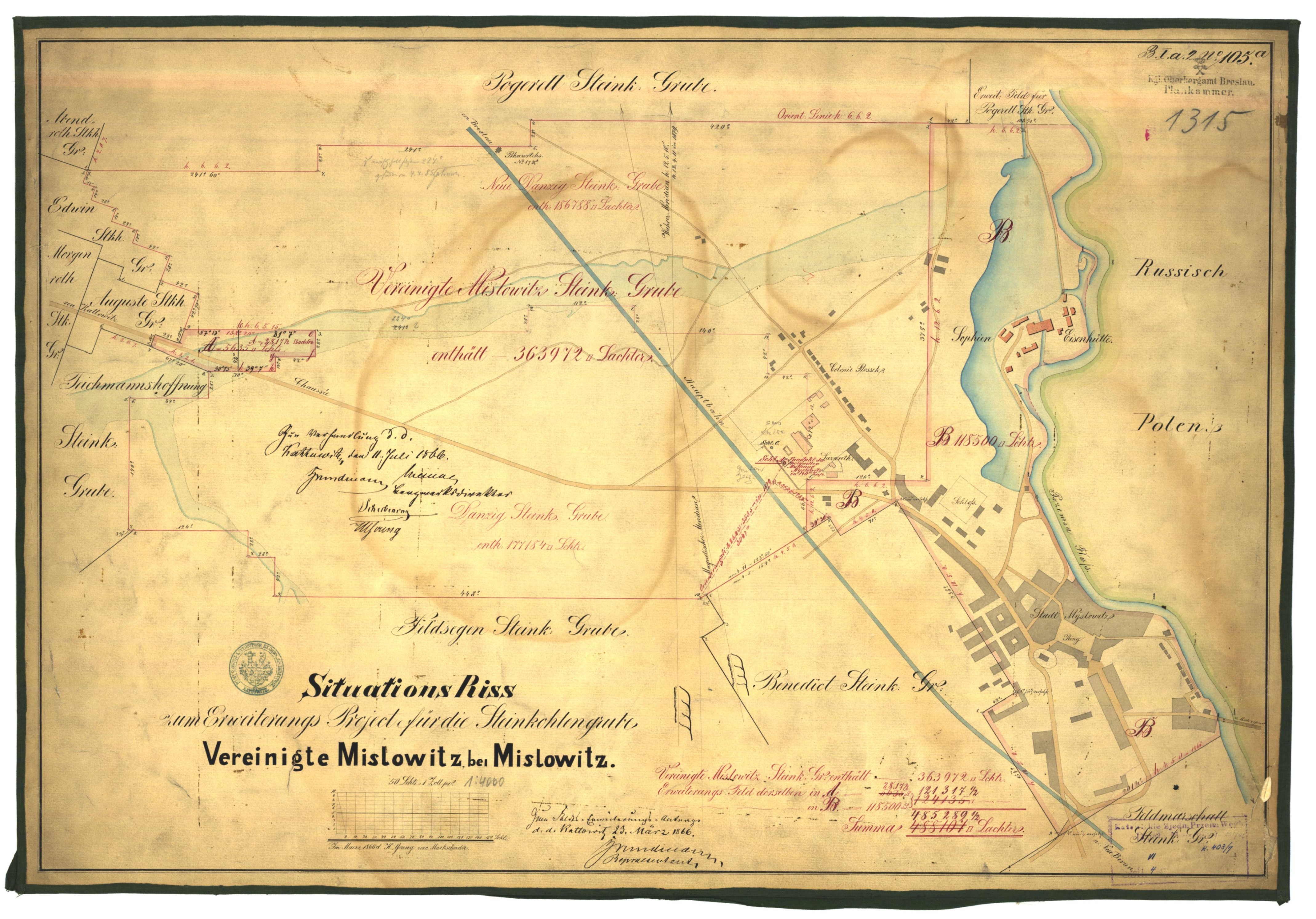 23 marca 1866 , Mapa sytuacyjna obszaru górniczego kopalni "Mysłówice"Skomentuj zdjęcie |