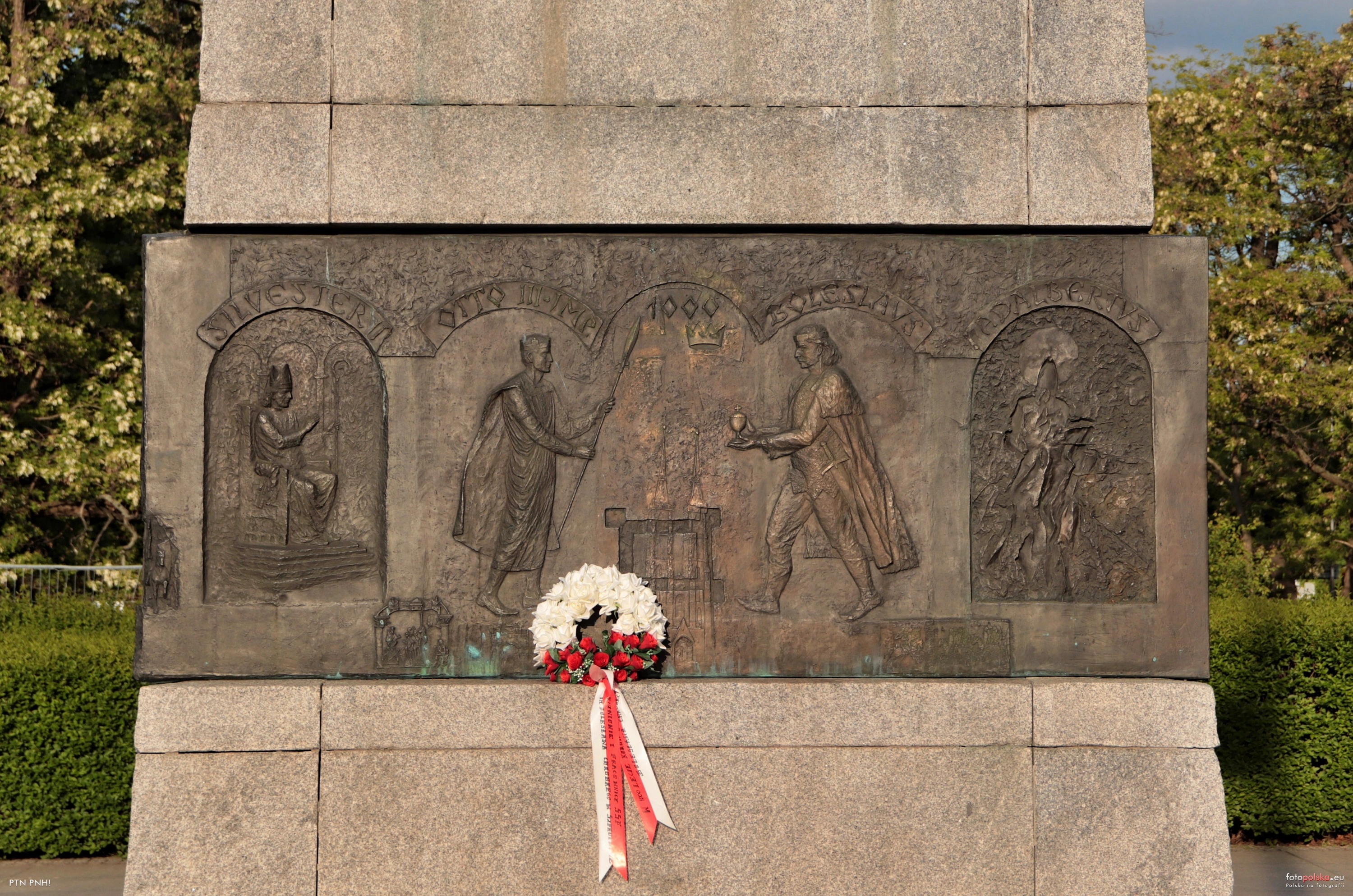 11 maja 2025 , Pomnik króla Bolesława I Chrobrego, fragment cokla pomniku.Skomentuj zdjęcie