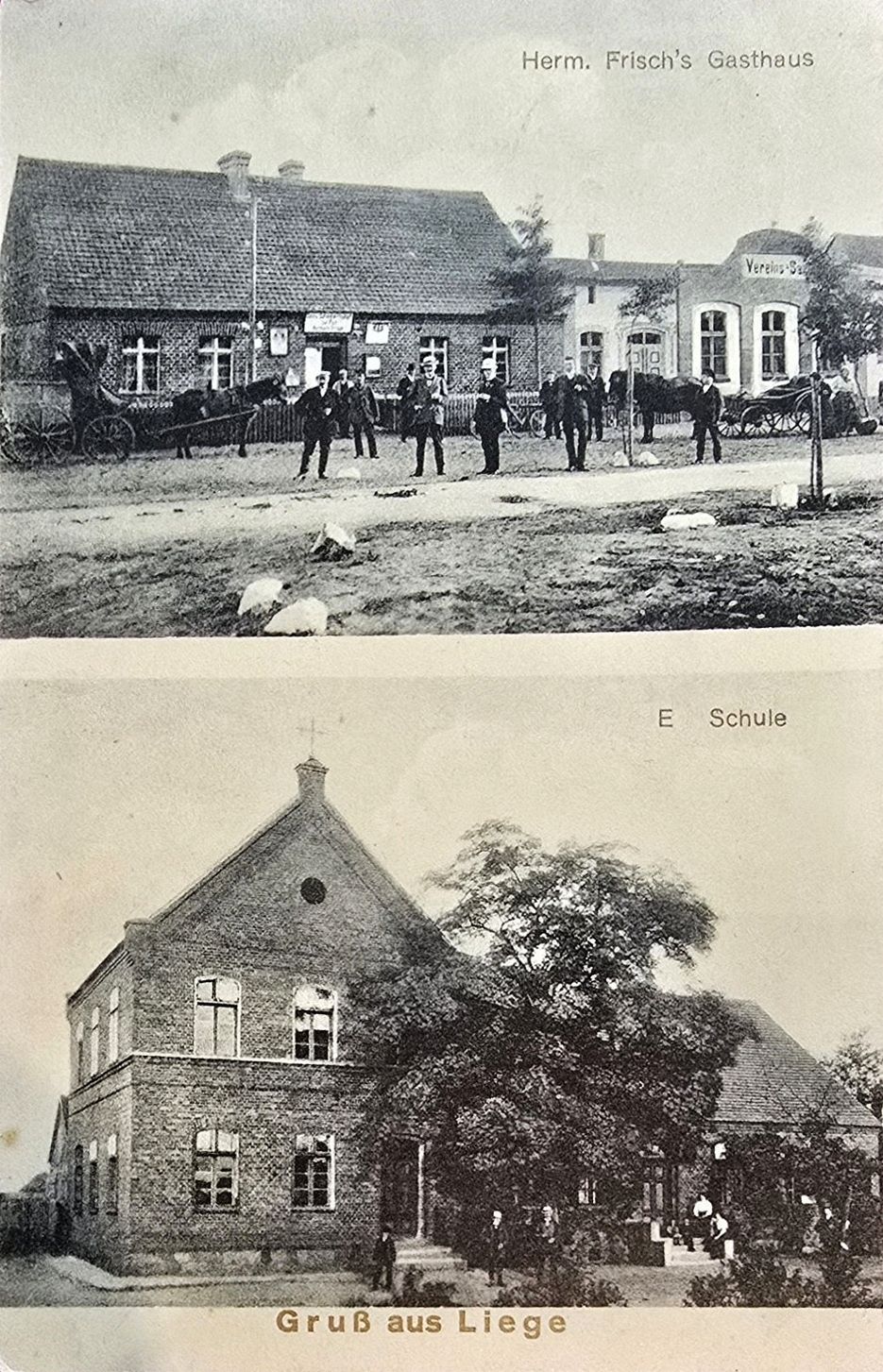 1911 , Lipa - zajazd, szkoła. Nieprawidłowa niemiecka nazwa miejscowości: Liege zamiast Liepe. |