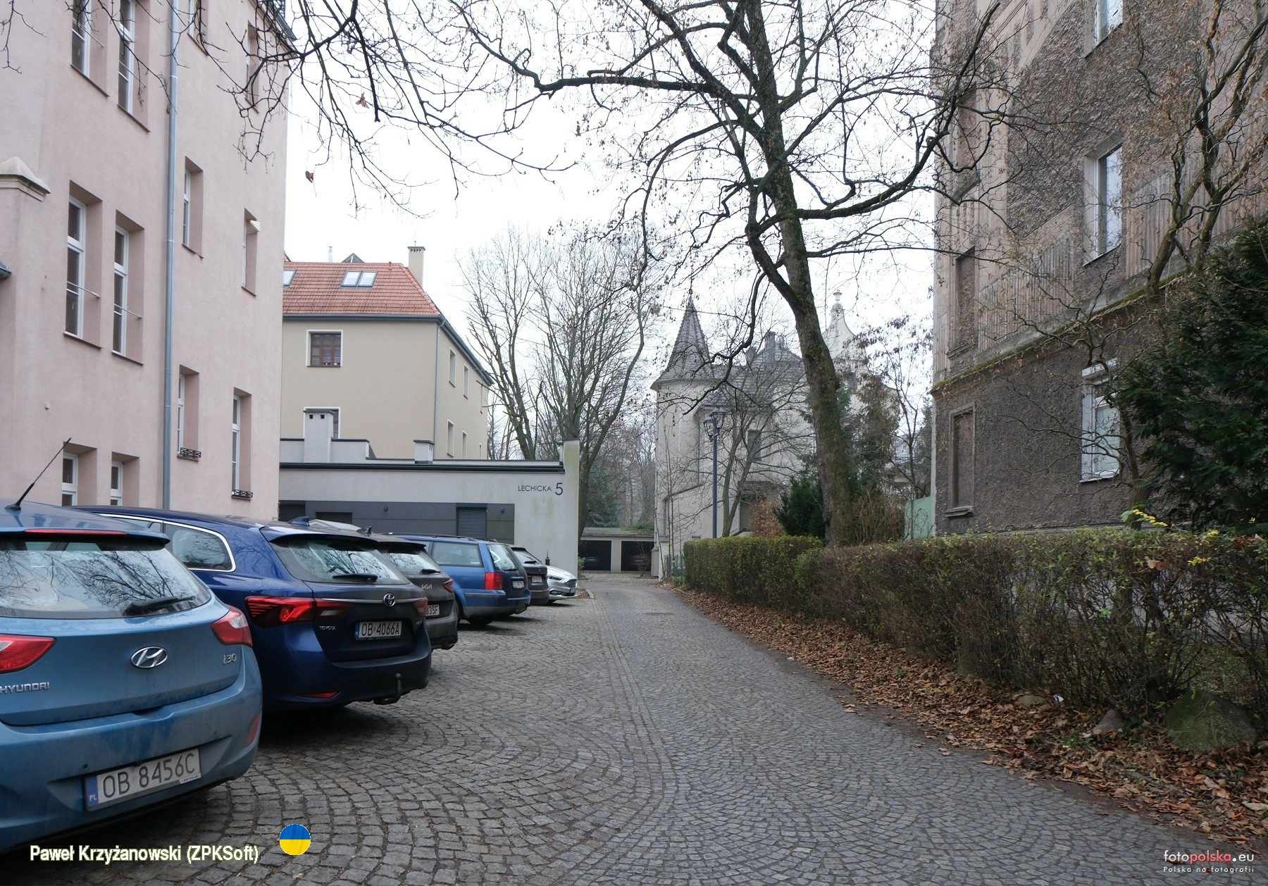 21 grudnia 2025 , Podwórze przy domu Lechicka 5 (z lewej) z widokiem na willę Lechicka 3.Skomentuj zdjęcie |
