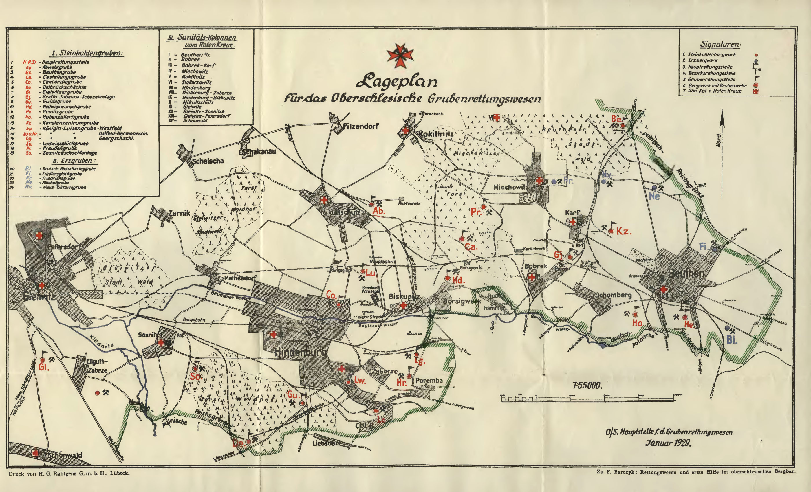 styczeń 1929 , Mapa niemieckiej części Górnego Śląska ratownictwa górniczego / |