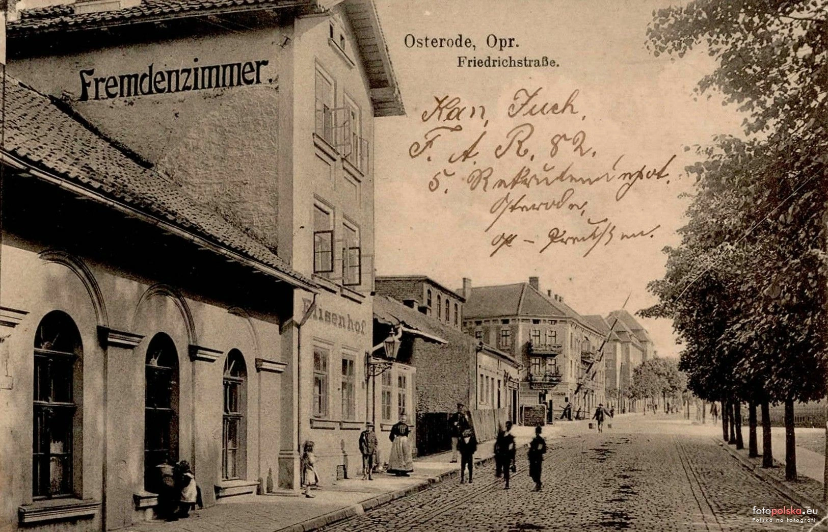 Lata 1910-1915 , Fragment ulicy Drwęckiej (ówczesnej Friedrichstrasse) w Ostródzie, z nieistniejącym budynkiem hotelu Elisenhof.Skomentuj zdjęcie |