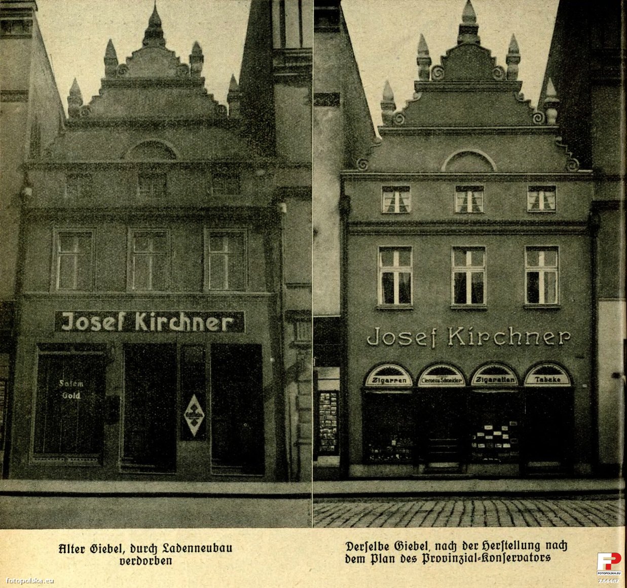 1936 , Kamienica ze sklepem Josefa Kirchnera w Paczkowie przed i po modernizacji fasady.Skomentuj zdjęcie