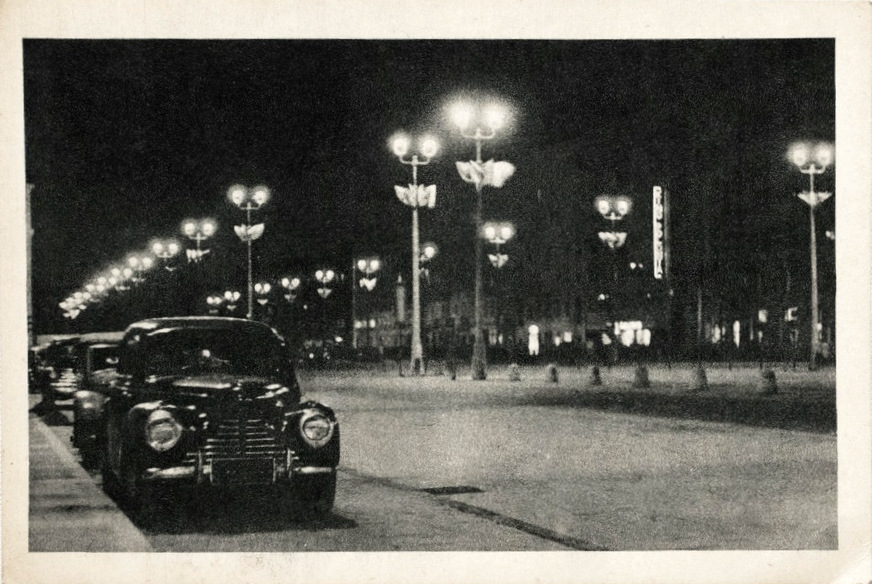 1952 , Nocna pocztówka placu Konstytucji wydana przez "Kraj" w 1952 r.Skomentuj zdjęcie |