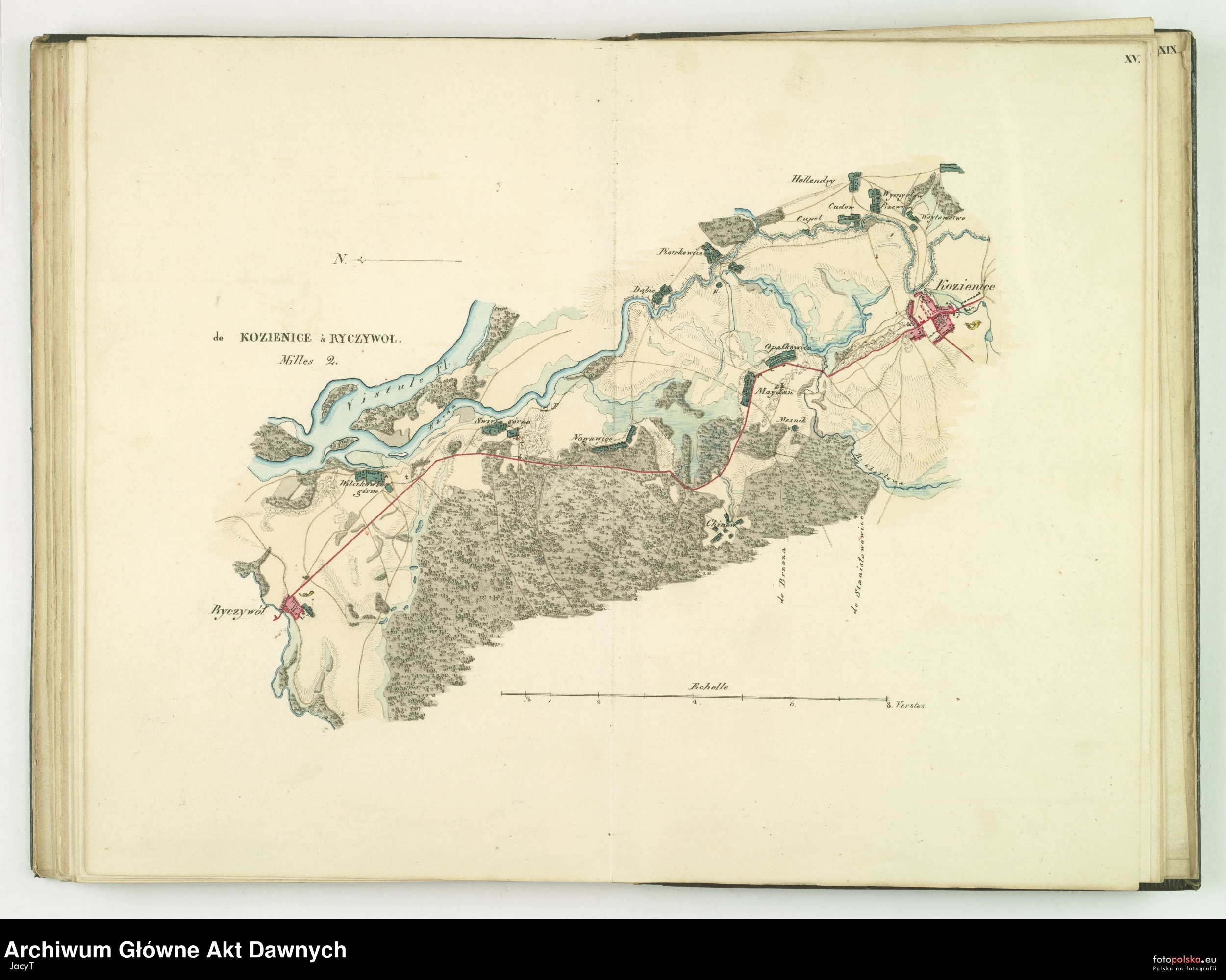 1821 , Trasa Kozienice - Ryczywół. Fragment katalogu map „Trasa z Krakowa przez Nowe Miasto, Korczyn, Opatów, Radom do Warszawy” (Route de Cracovie par Nowe - Miasto Korczyn, Opatów, Radom a Varsovie)Skomentuj zdjęcie |