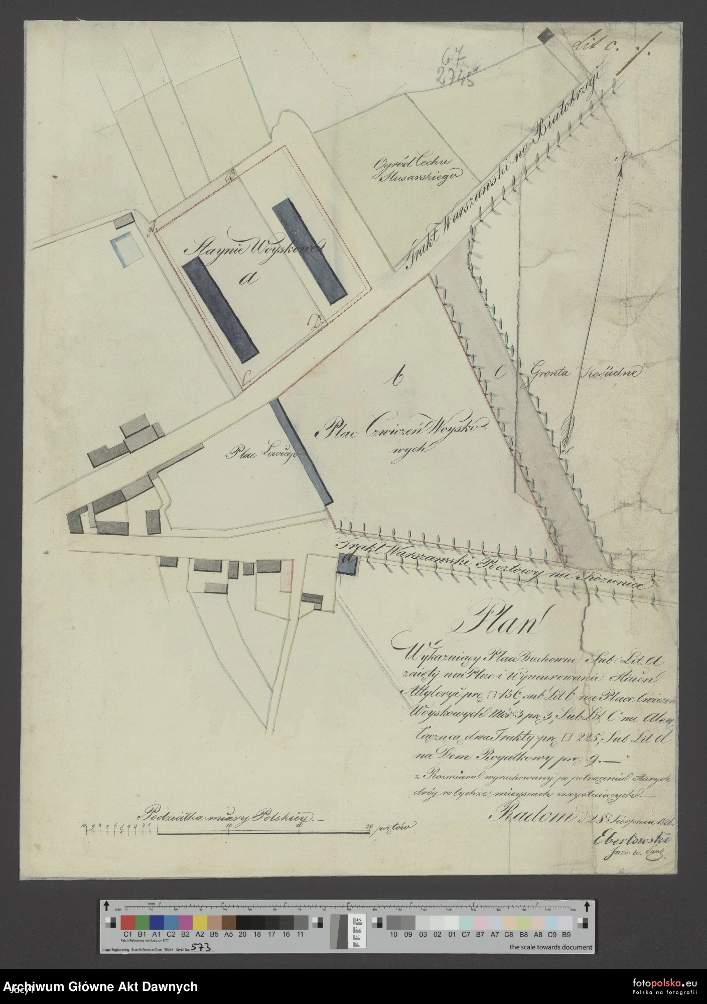 1826 , Dawna zabudowa wojskowa wzdłuż obecnej ul. Malczewskiego (dwa. Warszawska) znajdująca się w pobliżu nieistniejących już koszar wojskowych. Nazwa zbioru: „Plan wykazujący place duchowne Sub. Lit. a zajęty na plac i wymurowanie staien arttyleryi.” |