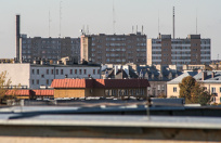 28 października 2005 , Bliżej - dach Banku PKO. Dalej ''wieżowce Manhattanu'' przy Ściegiennego nr 3, 1 i 8.Skomentuj zdjęcie |