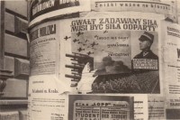 1939 , Słup ogłoszeniowy z ogłoszeniami z okresu mobilizacji przed II wojną św. i okupacyjnymi przed kamienicą przy Karmelickiej 29.Skomentuj zdjęcie