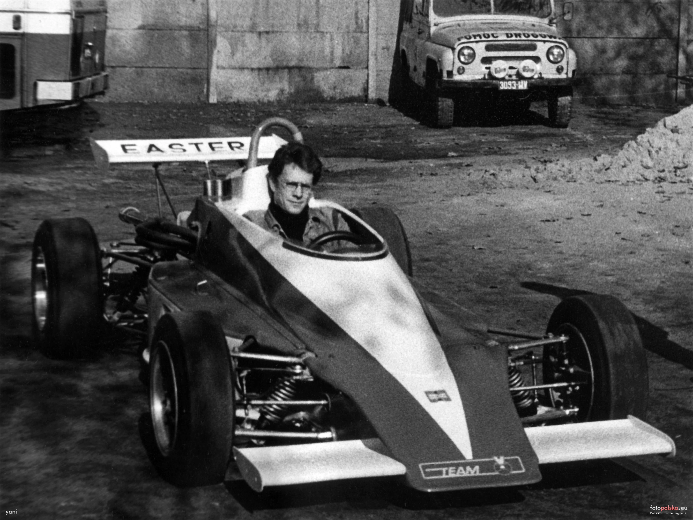 1978 , Samochód wyścigowy Formuły Easter, skonstruowany w Ośrodku Techniczno-Zaopatrzeniowym PZMot przy ul. Kickiego 4. Za kierownicą yani. |