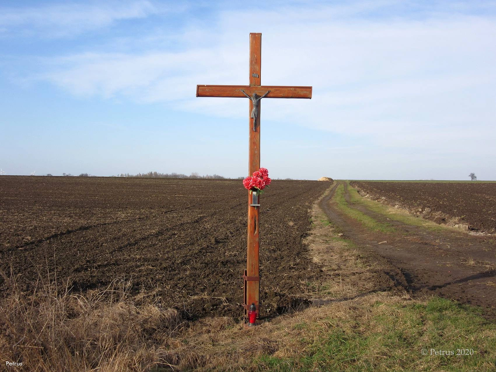 , Drewniany krzyż przy wylocie w kierunku Wojnowic