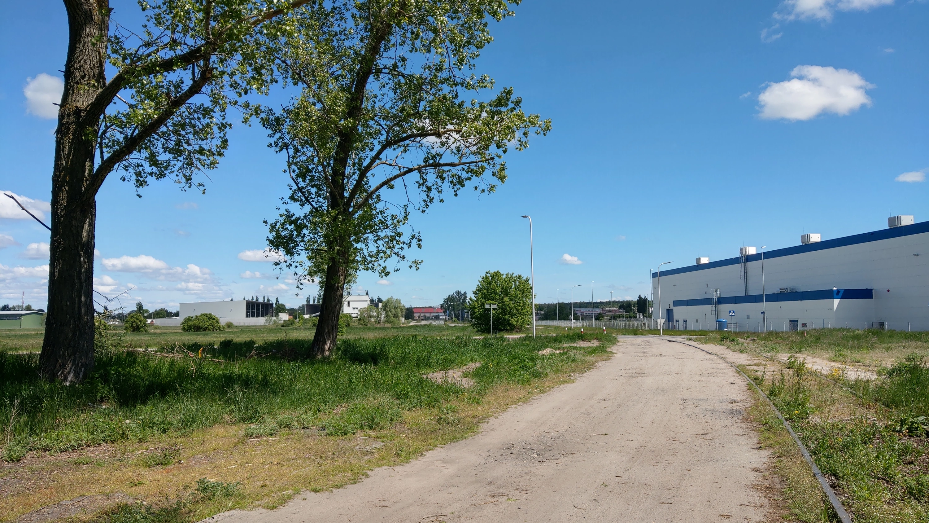 30 maja 2020 , ulica Torowa, w pobliżu skrzyżowania z ul. Magazynową. Po prawej stronie zakład Thule.Skomentuj zdjęcie