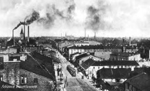 Lata 1918-1939 , Tramwaj U-104 z doczepami GE-58 na ul. Warszawskiej w Pabianicach, pocztówka wydana w okresie II wojny światowej. |