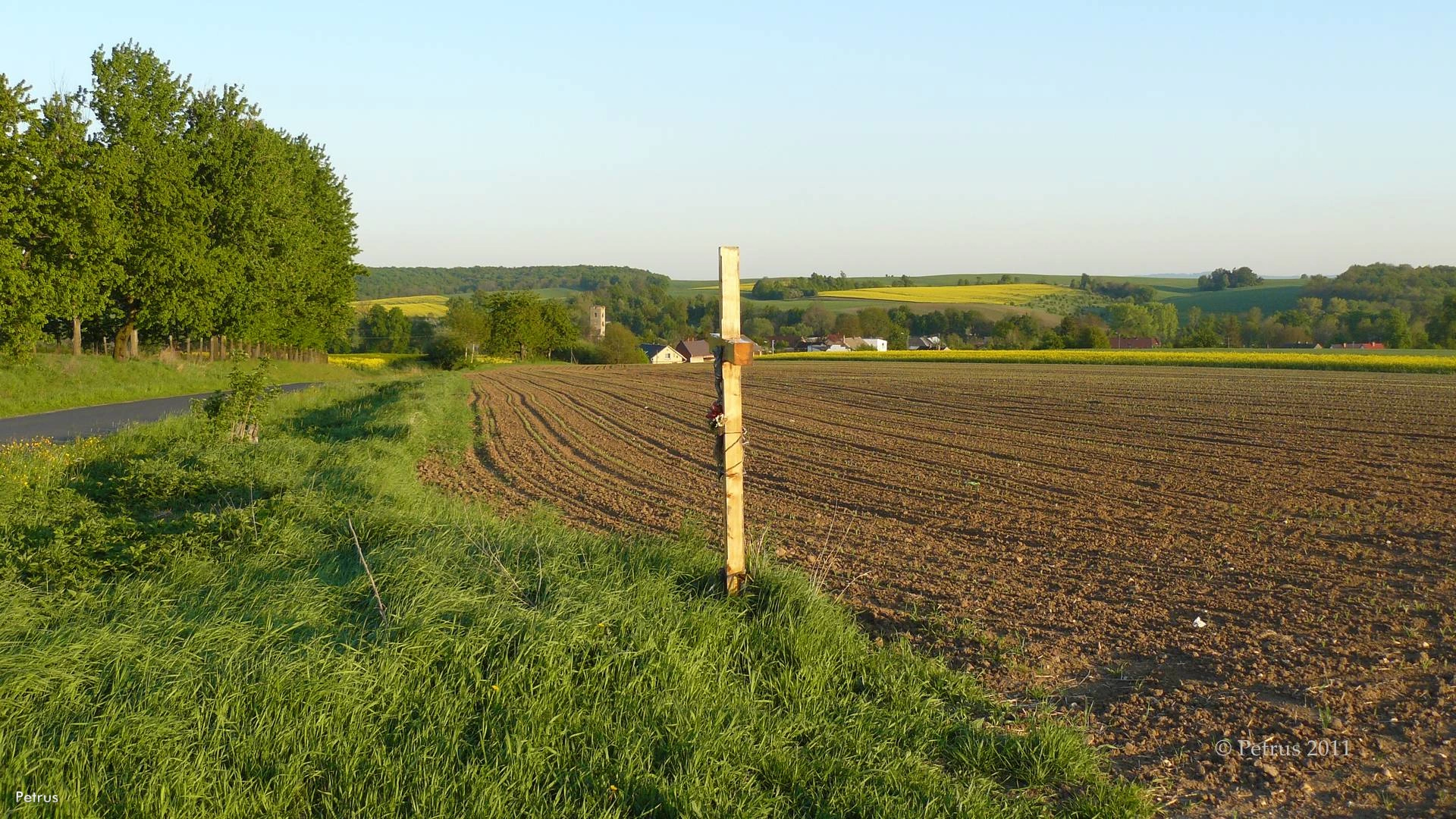 maj 2011 , Drewniany krzyż przy drodze do Dzierżysławia, na północy wioski. W tym miejscu dawniej stał wiatrakSkomentuj zdjęcie |