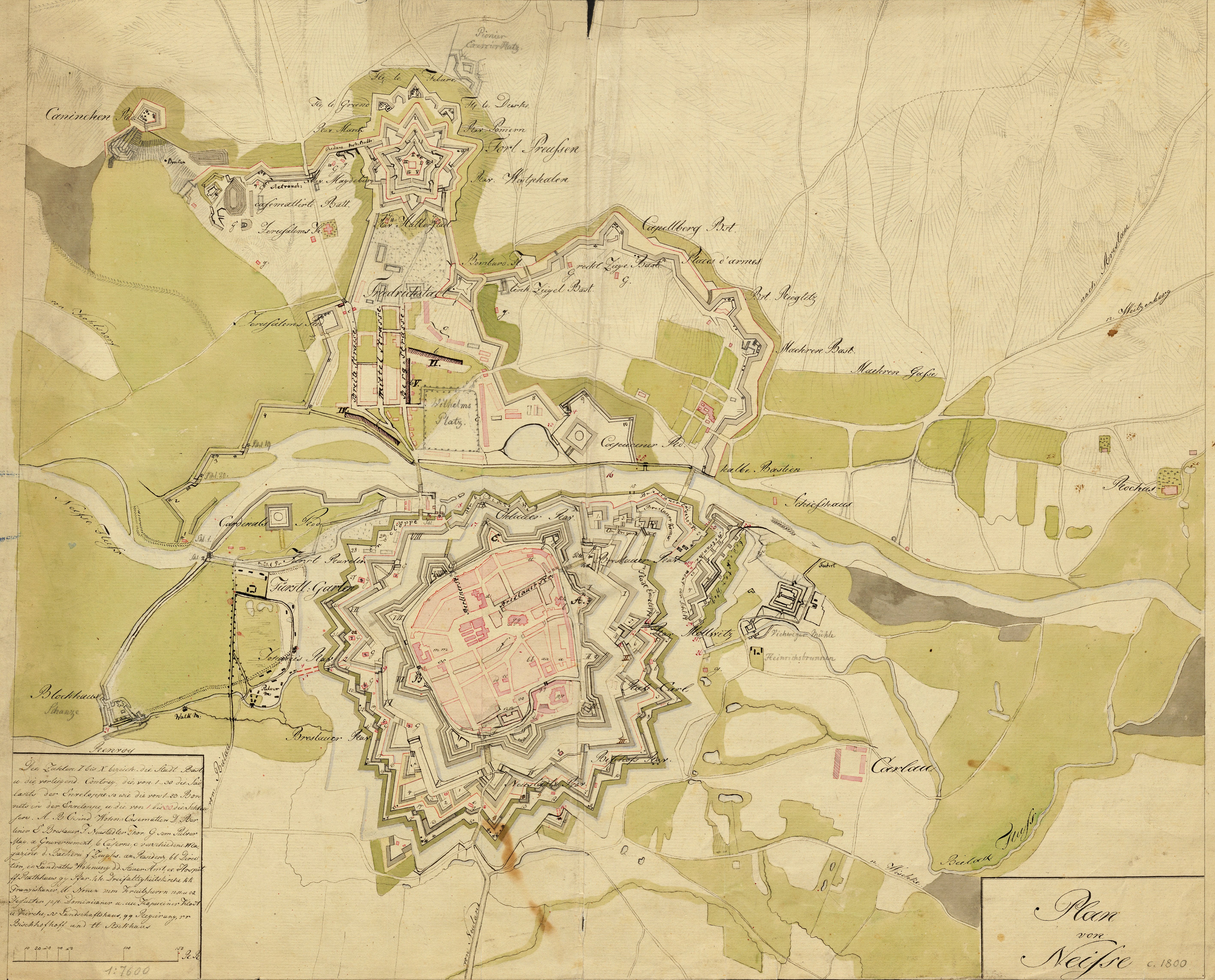 1800 , Plan Nysy z ok. roku 1800 z opisanymi fortyfikacjamiSkomentuj zdjęcie |