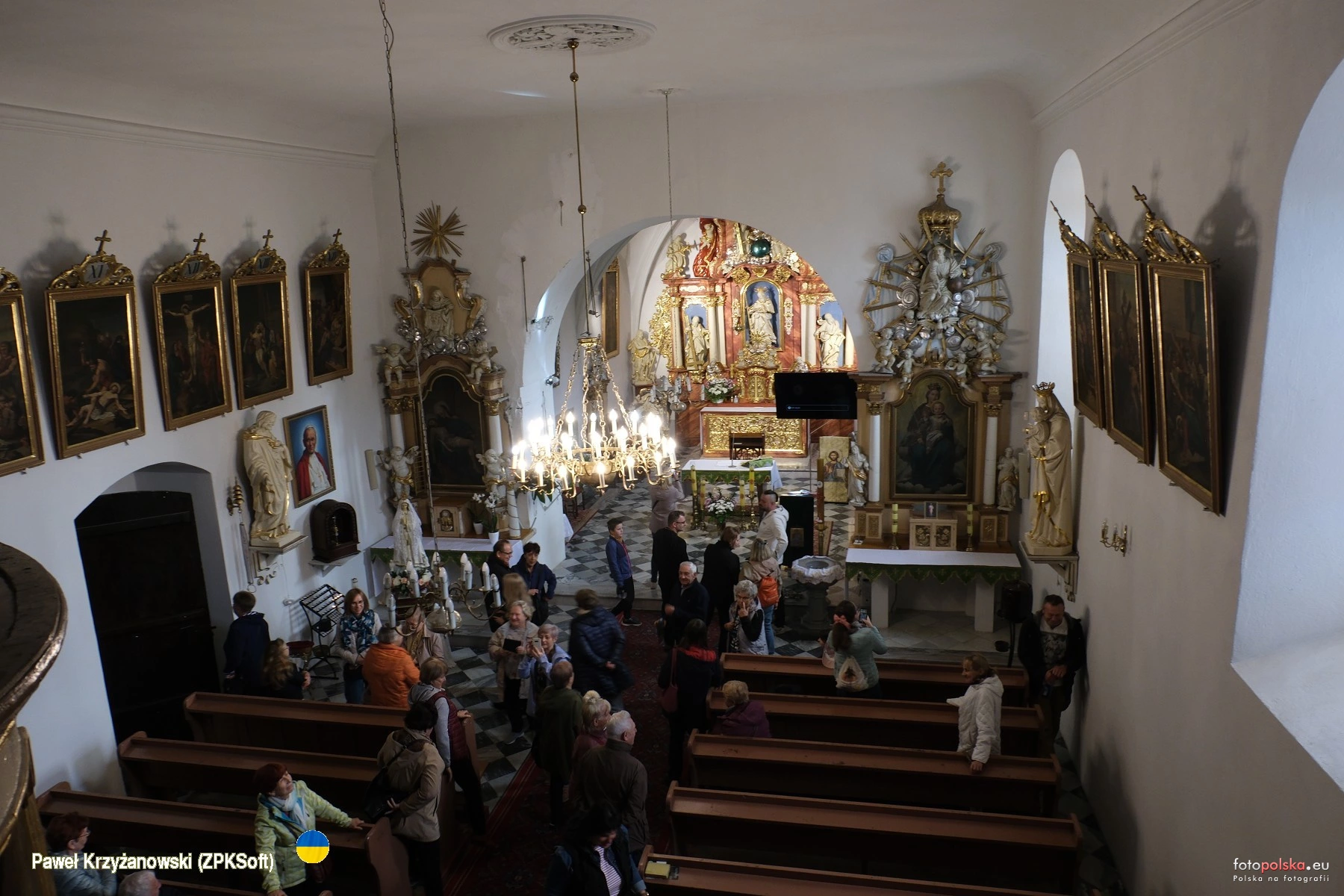 27 września 2025 , Kościół parafialny św. Jakuba Apostoła, wzmiankowany w 1335 r., obecny gotycki wzniesiony w XV w., gruntownie zbarokizowany w 1725 r., restaurowany w XIX w. i w 1960 r. Wnętrze w większości z wyposażeniem barokowym z XVIII w. Na zdjęciu spojrzenie z empory muzycznej.Skomentuj zdjęcie |