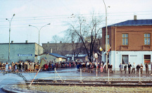 marzec 1980 , Ludzie oczekujący na przybycie kopii obrazu Matki Bożej Częstochowskiej. Zabudowania po lewej - obecnie nie istnieją. Po prawej widoczny fragment narożnego budynku przy ulicy Czerwonych Sztandarów 44. Zbiory prywatne p. Mariana Sauczka. Ze stronySkomentuj zdjęcie |