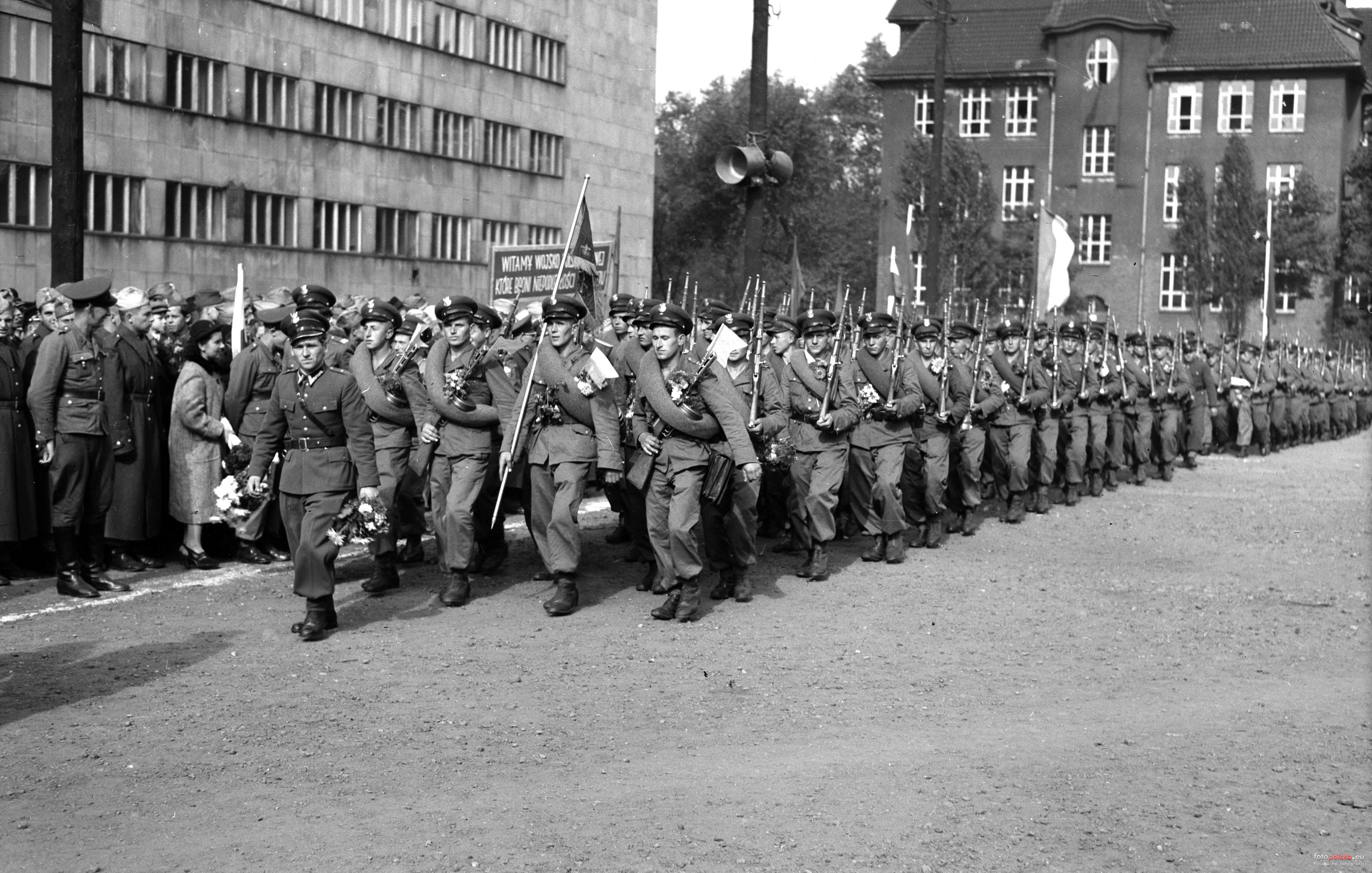 1951 , Powitanie jednostek wojskowych powracających z obozów letnich w Katowicach.Skomentuj zdjęcie |