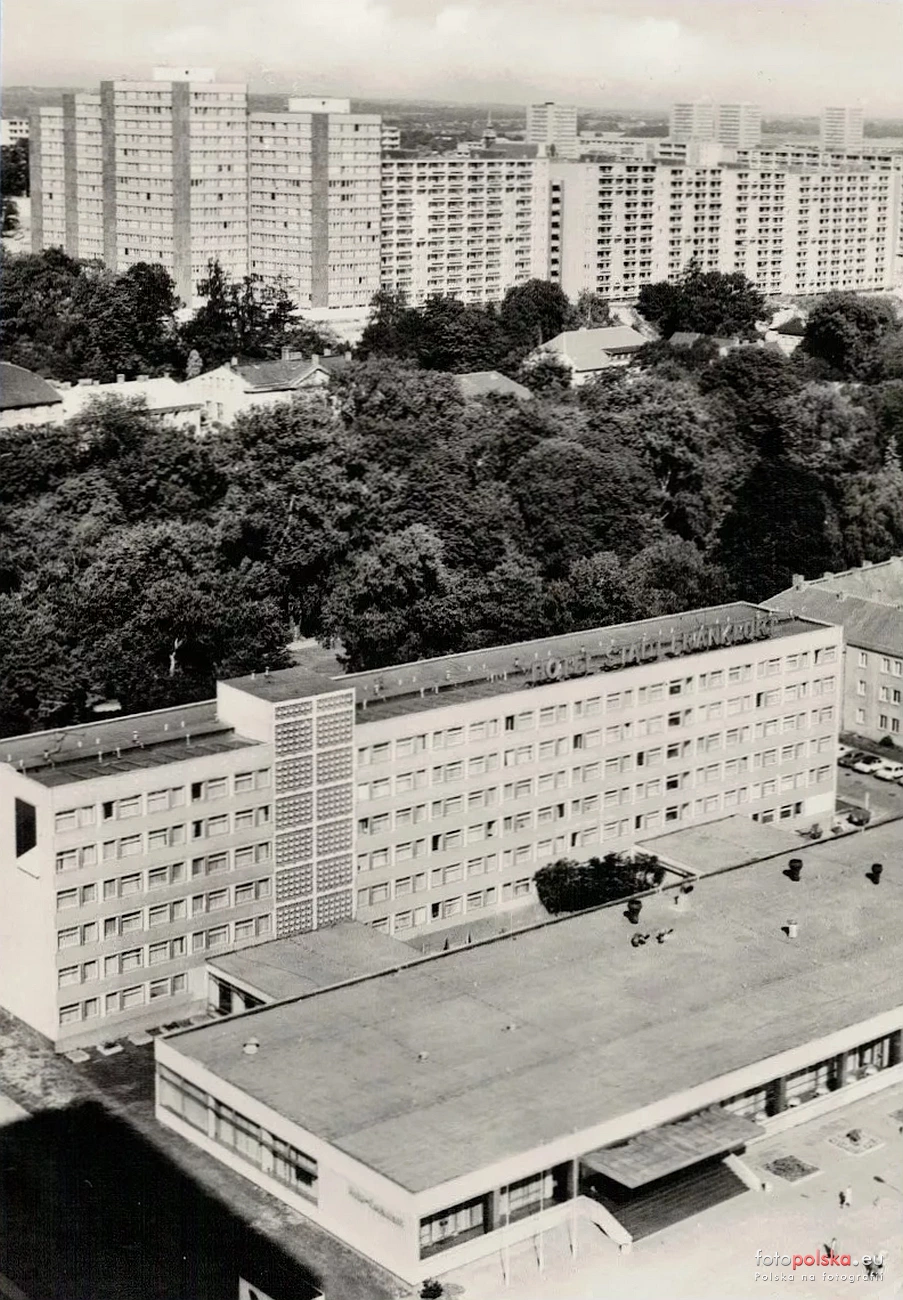 Lata 1973-1979 , Hotel Stadt Frankfurt, dalej ulica Halbe Stadt oraz bloki przy Salvador-Allende-Höhe / Pablo-Neduda-Block.Skomentuj zdjęcie |