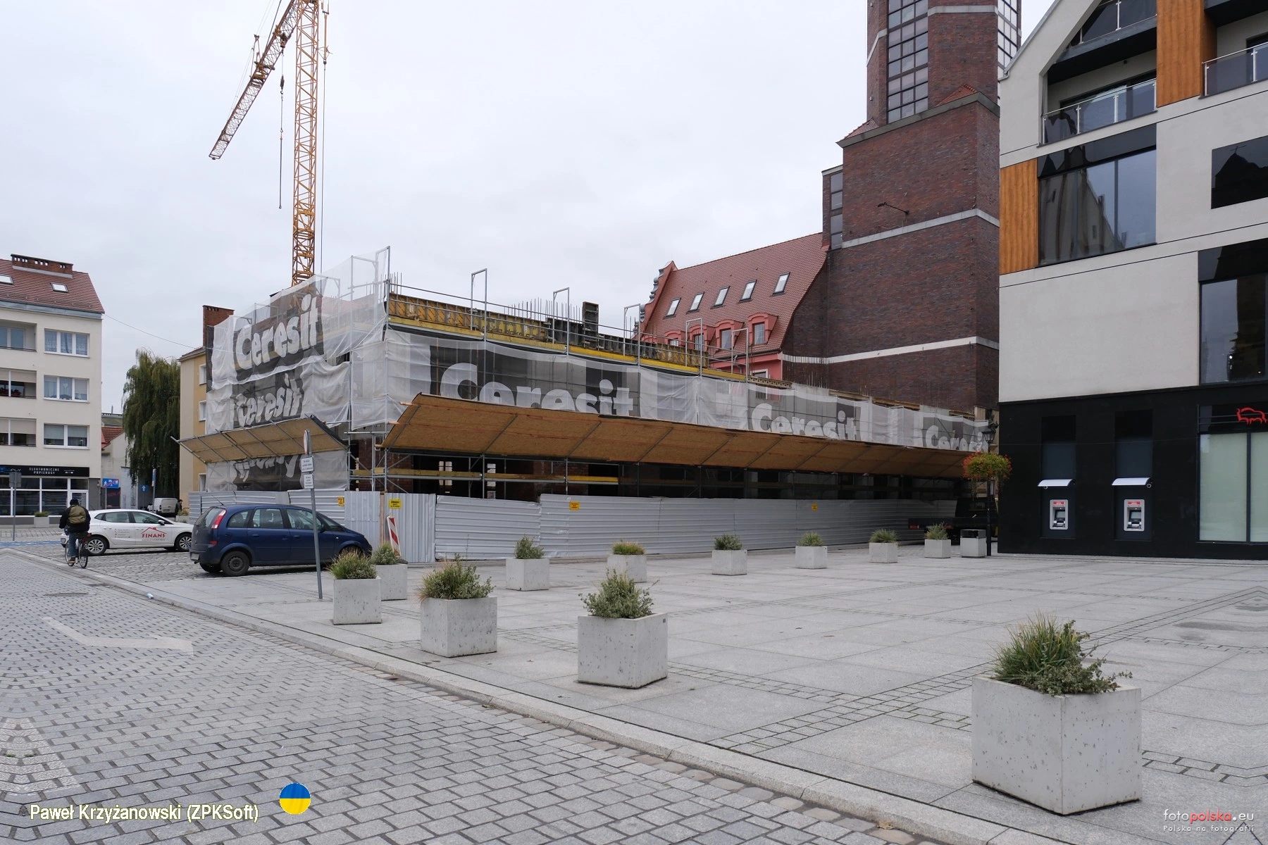 11 października 2025 , Długo wyczekiwana inwestycja w Rynku, przy ulicy Sukienniczej. W miejscu zniszczonej kamienicy powstaje nowy budynek mieszkalny z lokalami użytkowymi, potocznie nazwany "ratuszem" gdyż takowy obiekt tu stał wcześniej. W końcu zniknął paskudny betonowy podest - vide .Skomentuj zdjęcie