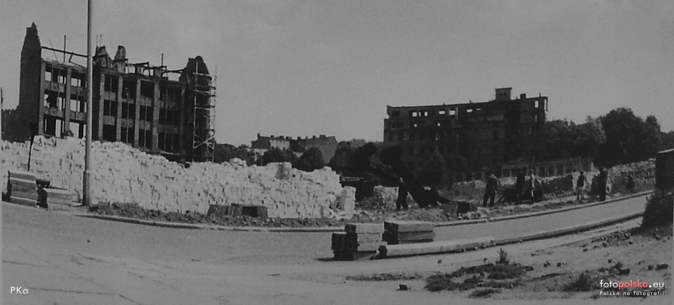 Lata 1948-1955 , Odgruzowanie kwartału pomiędzy Małopolską i Mazowiecką. Fotka jakości poglądowej, zniekształcona geometrycznie, w przyszłości do podmiany ...Skomentuj zdjęcie
